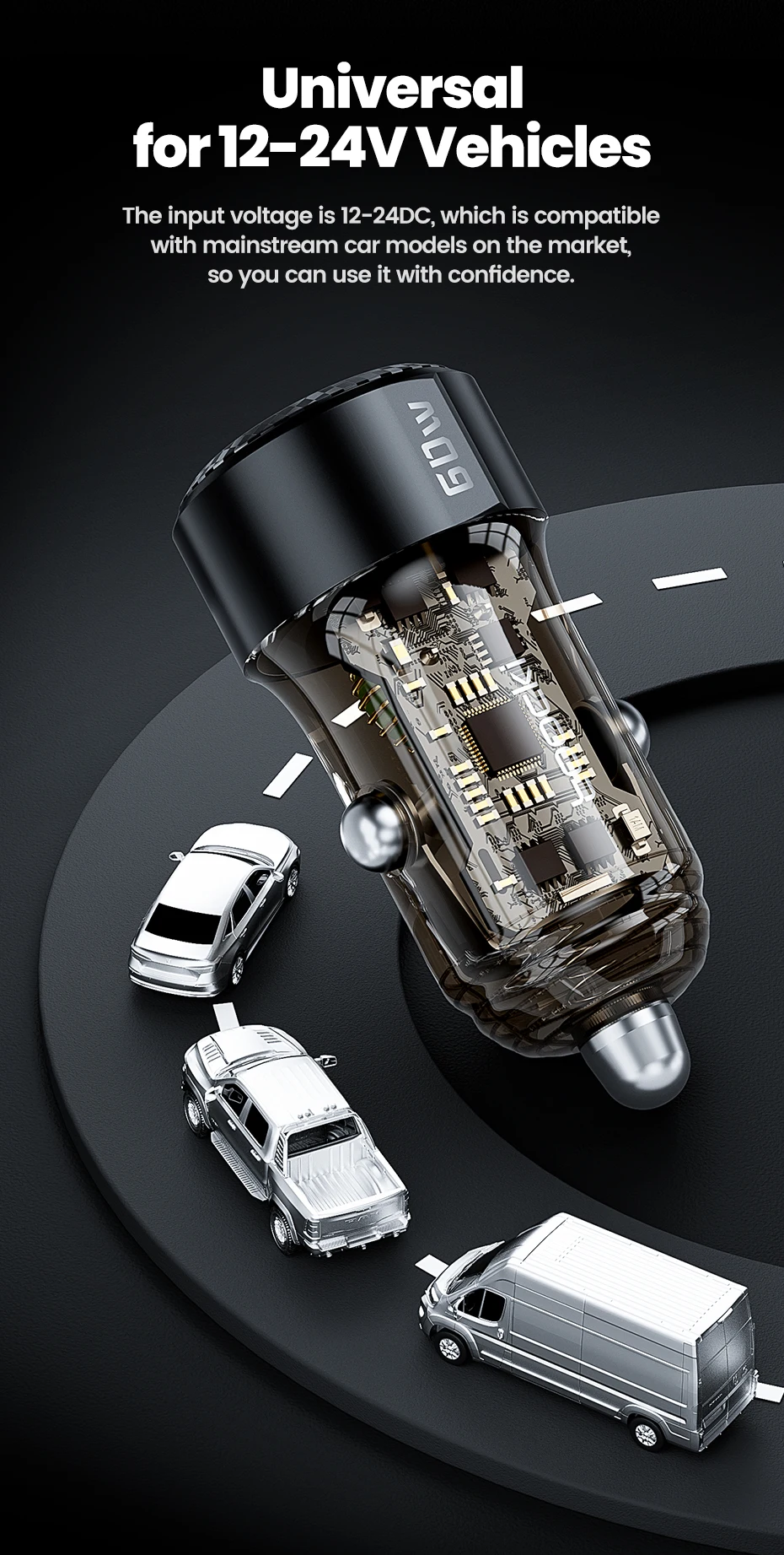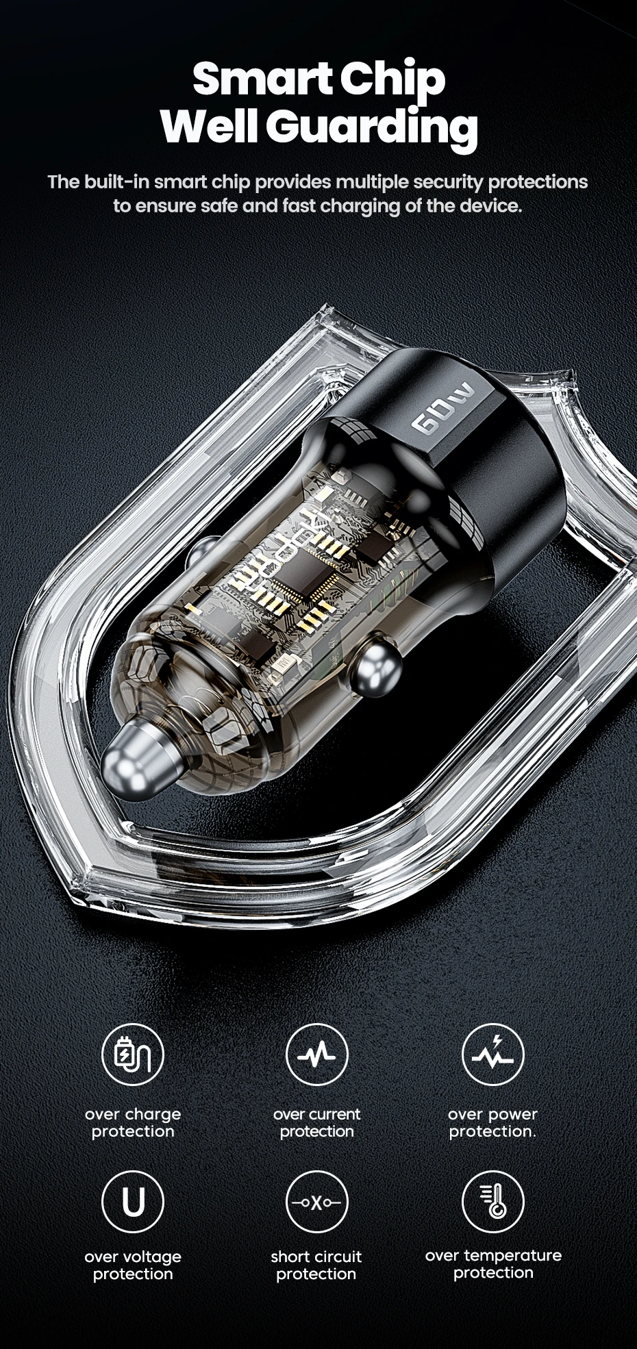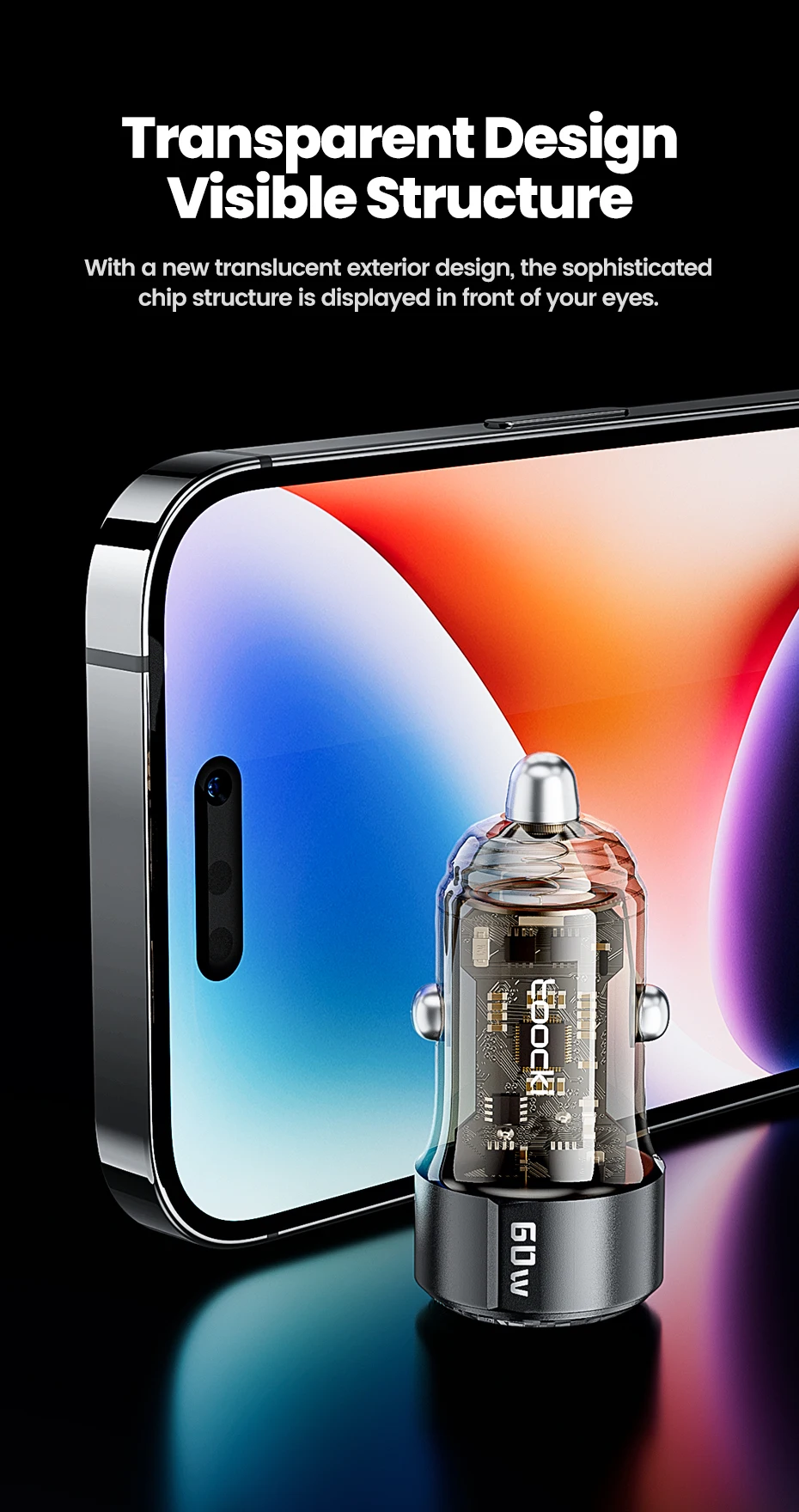 Carga rápida de doble puerto, diseño ultramini, compatibilidad multiprotocolo, nuevo diseño transparente