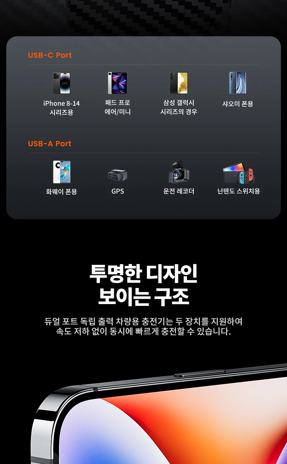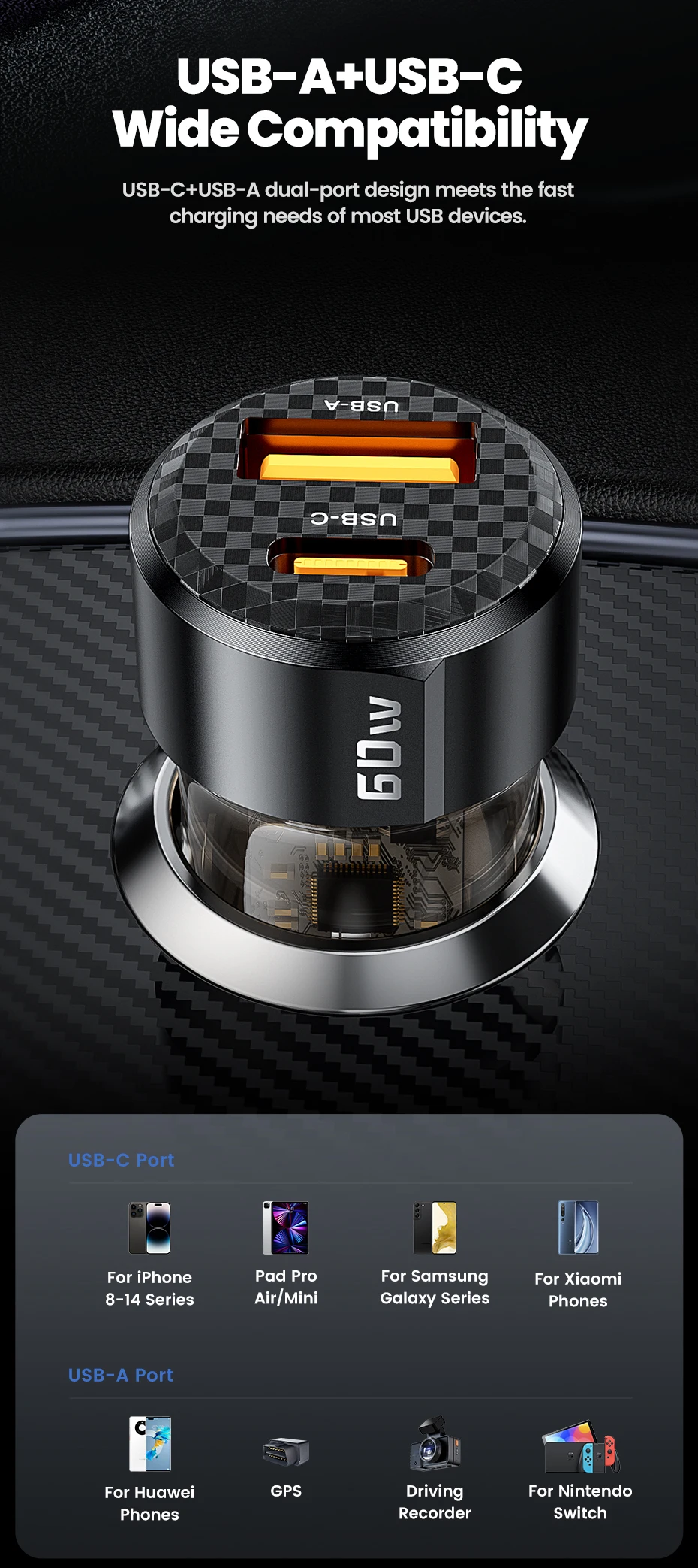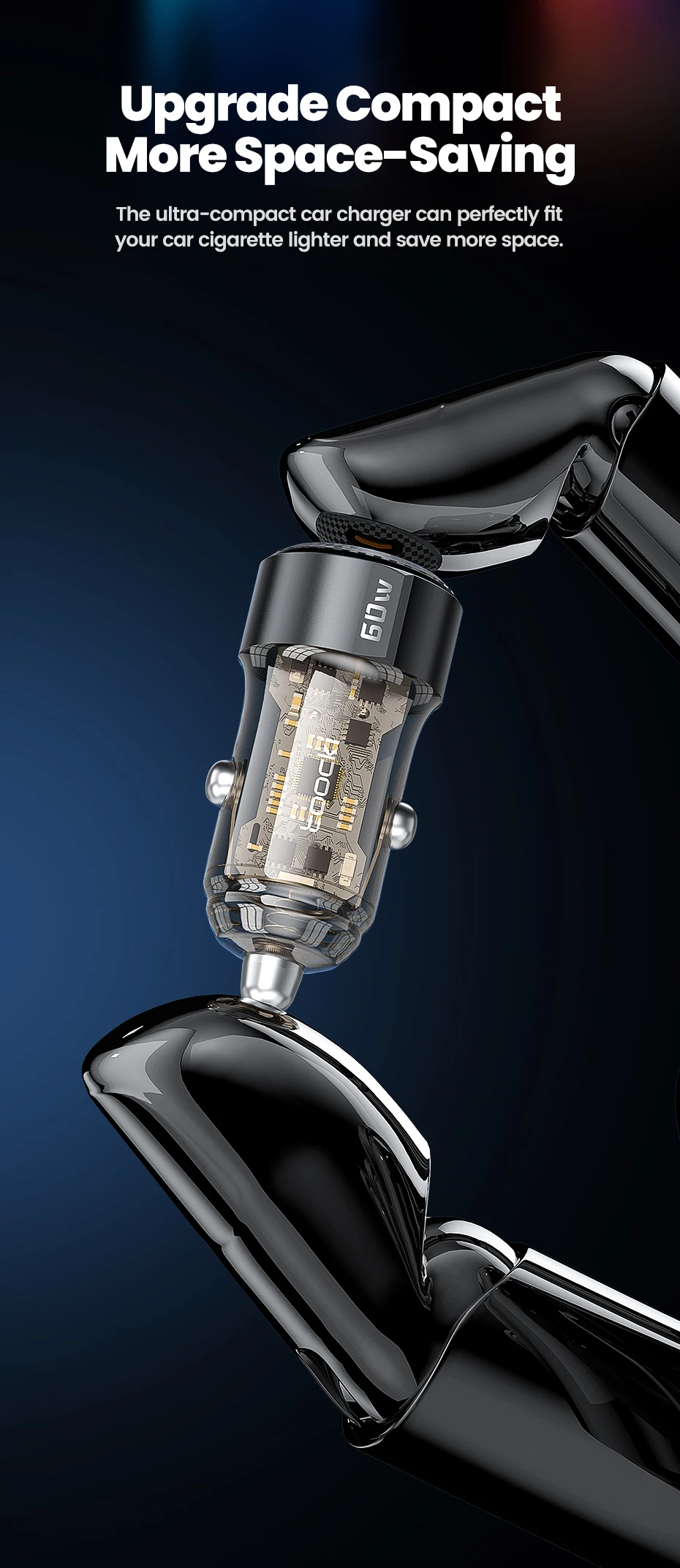Carga rápida de doble puerto, diseño ultramini, compatibilidad multiprotocolo, nuevo diseño transparente