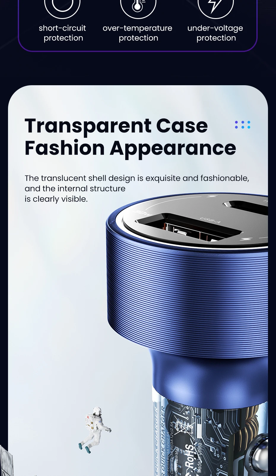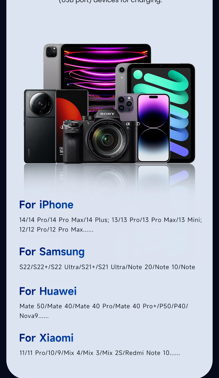 Nota: Este cargador de coche no admite carga rápida de teléfonos móviles OPPO/vivo/OnePlus