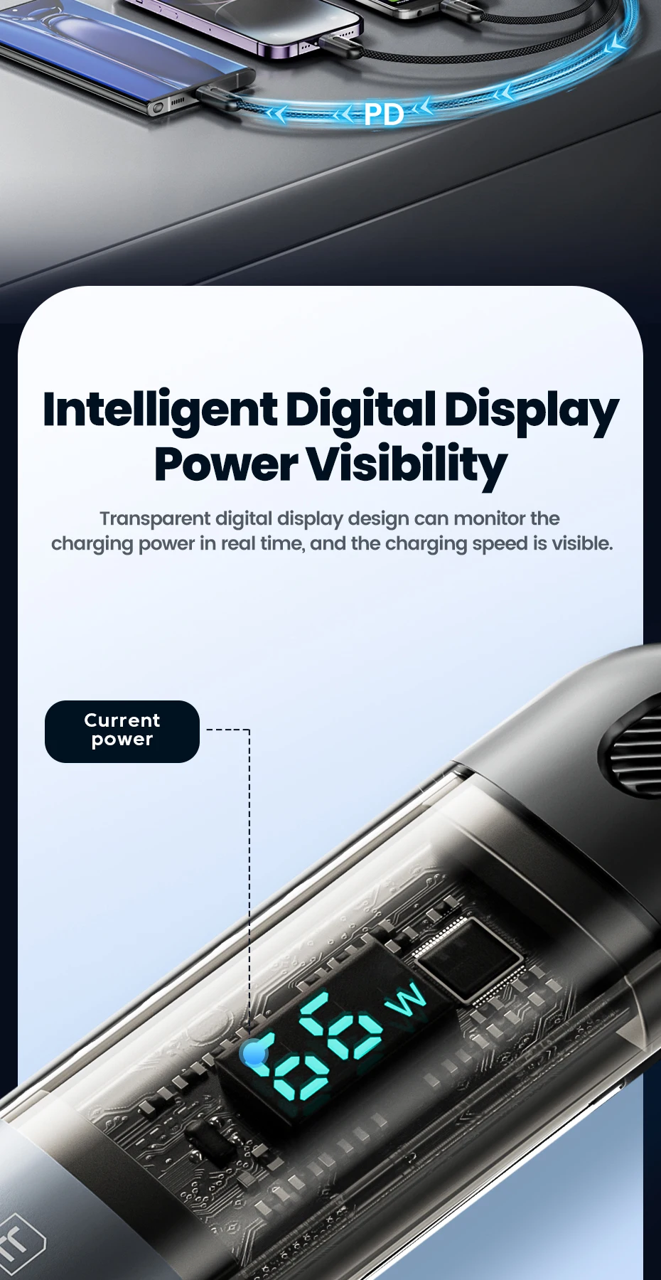 Comprar Toocki 66W 3 en 1 Cable USB 6A carga rápida pantalla Digital transparente Cable tipo C para Huawei P60 P50 P40 P30 para iPhone 15