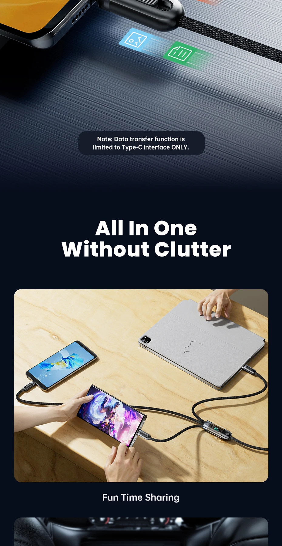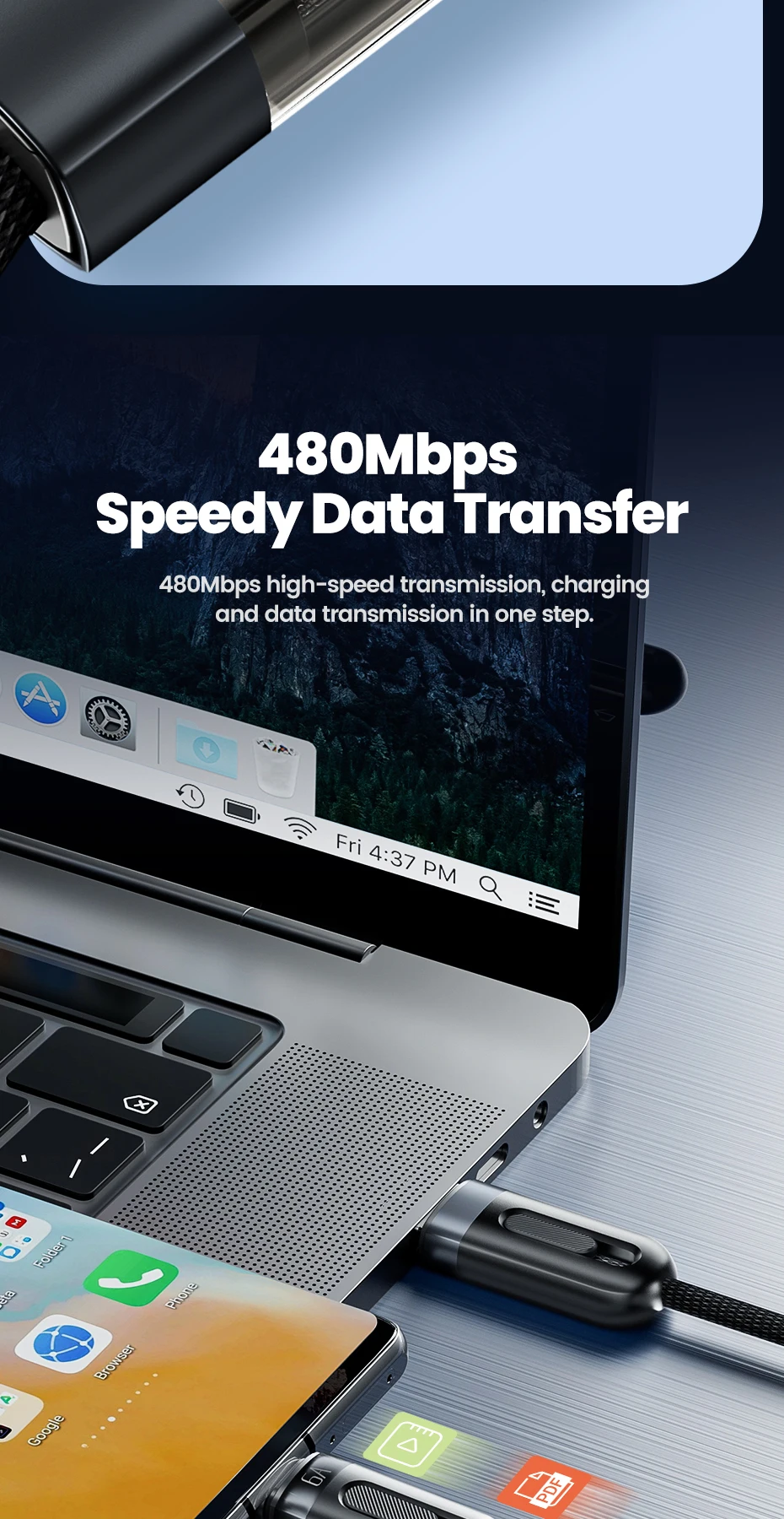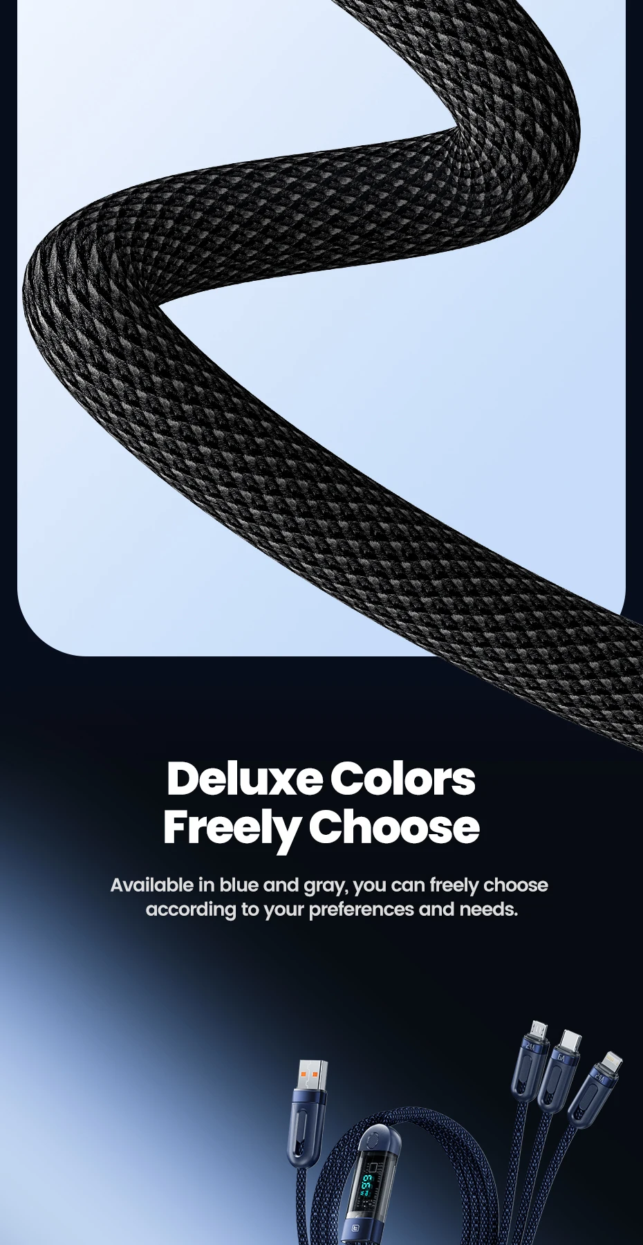 Toocki 66W 3 en 1 Cable USB Micro USB tipo C Cable de pantalla Digital para iPhone 15 14