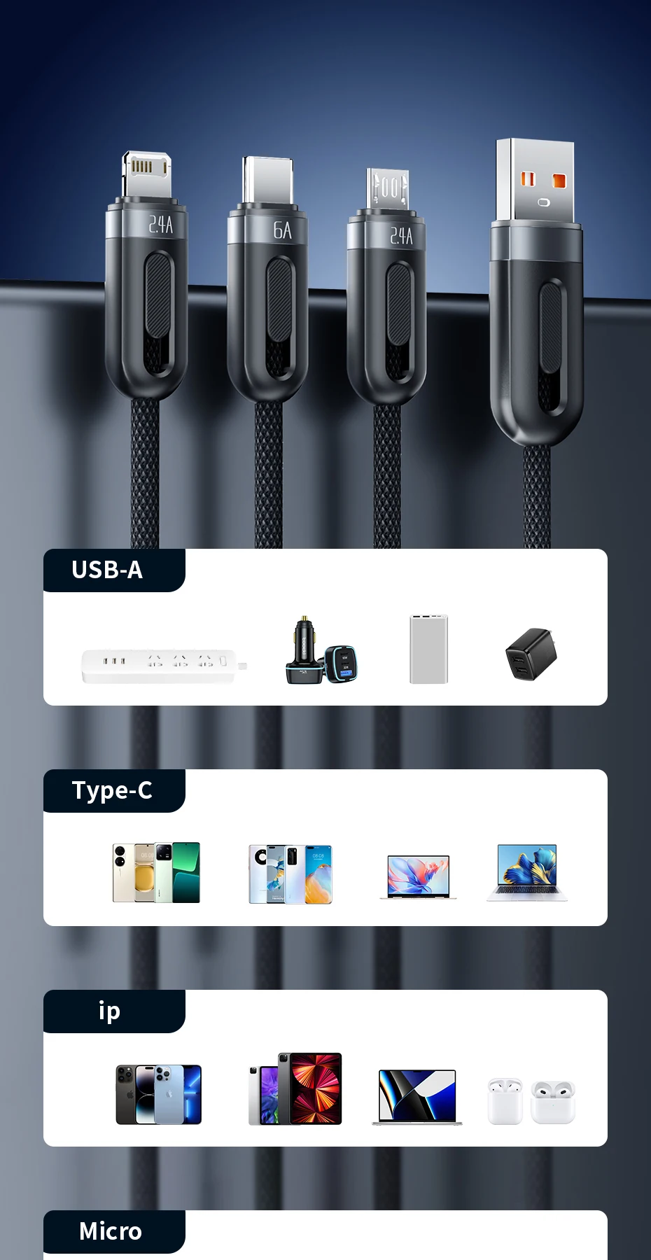 ✅Diseño 3 en 1, ampliamente compatible con dispositivos de interfaz tipo C/Micro/Lightning