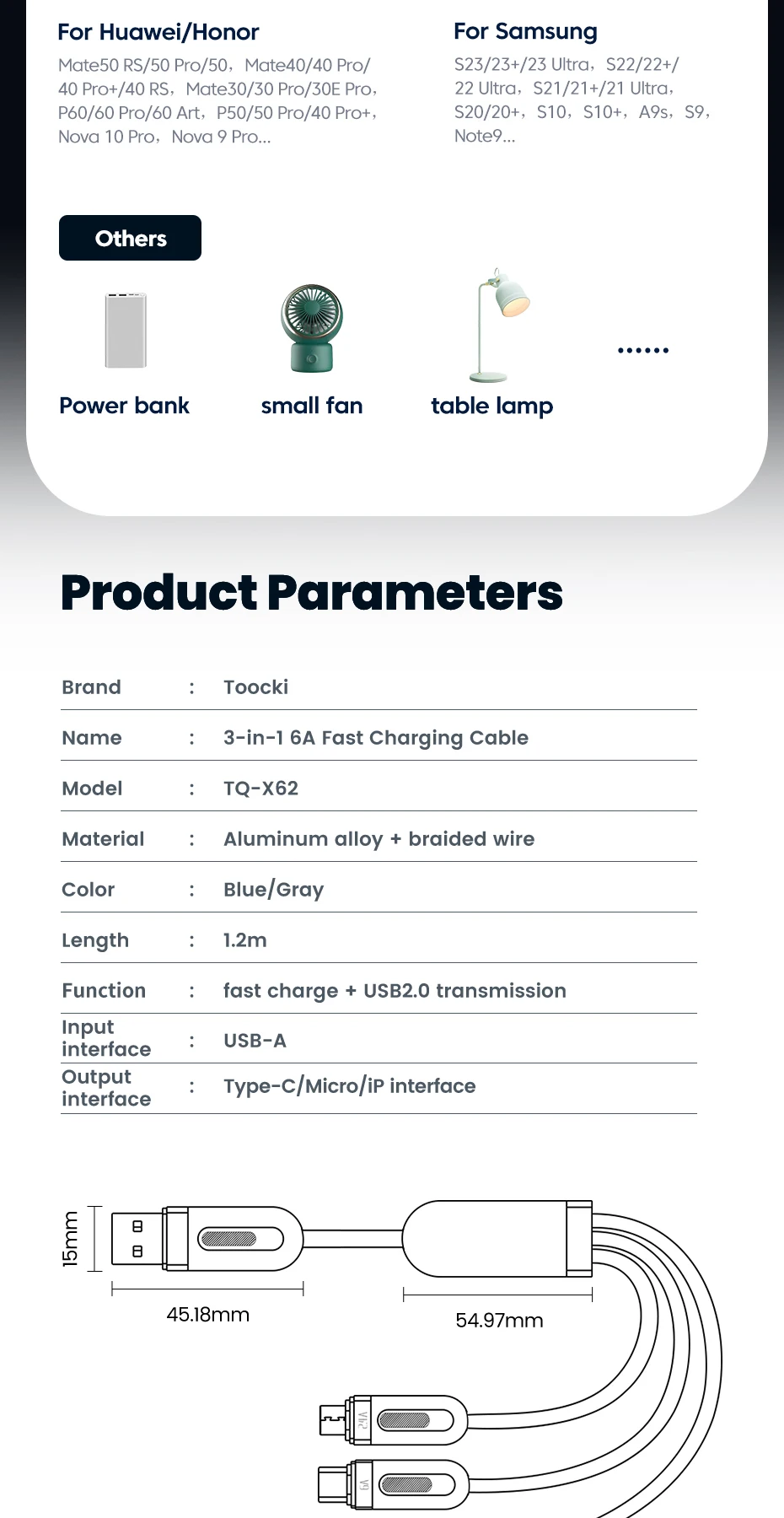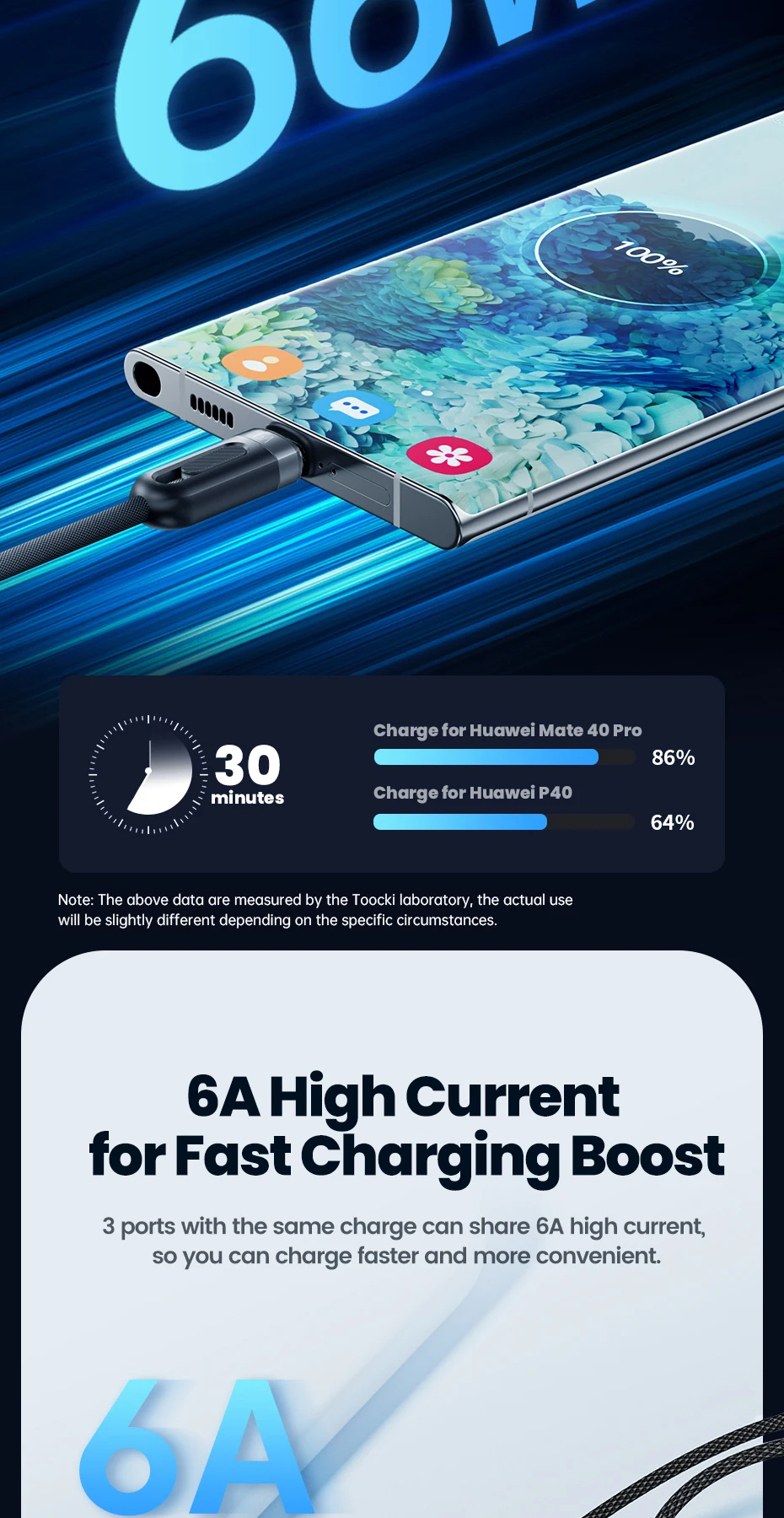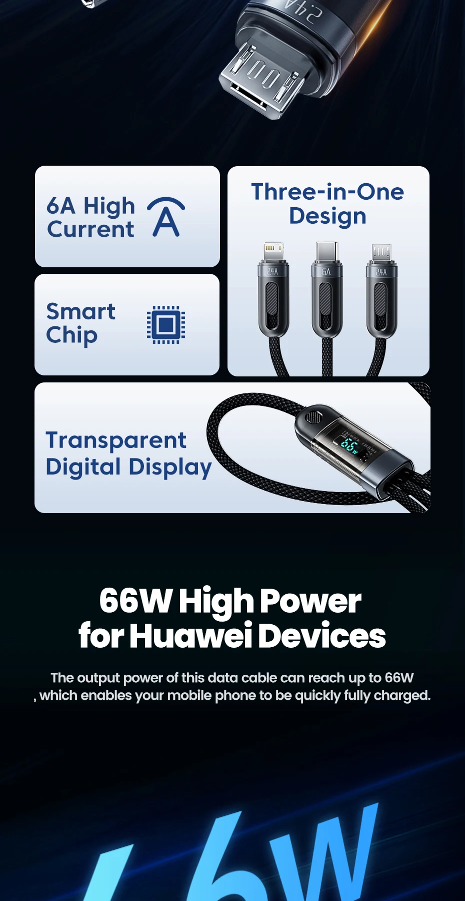✅ 6A 66W de alta potencia para dispositivos Huawei