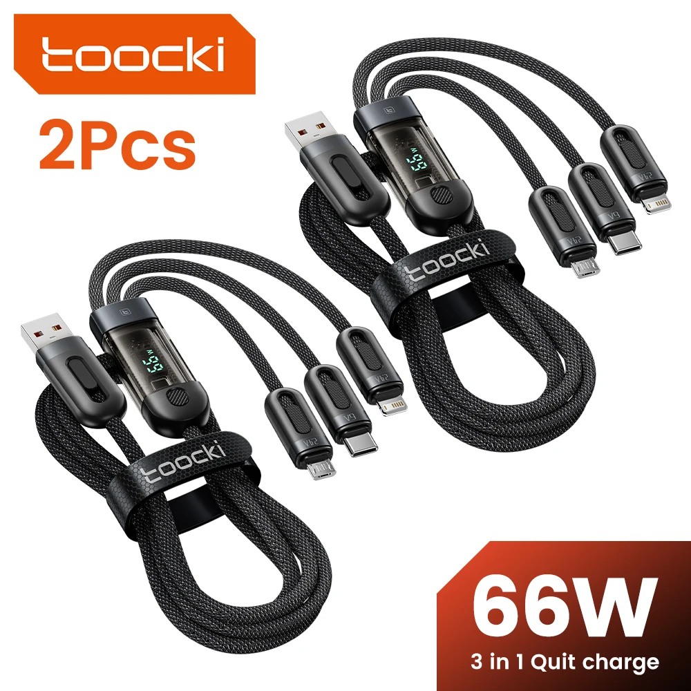 Toocki 66W 3 en 1 Cable USB Micro USB tipo C Cable de pantalla Digital para iPhone 15 14