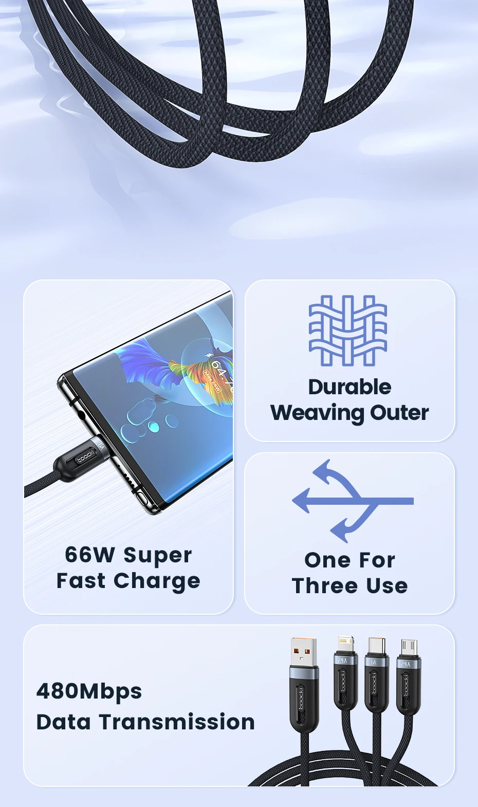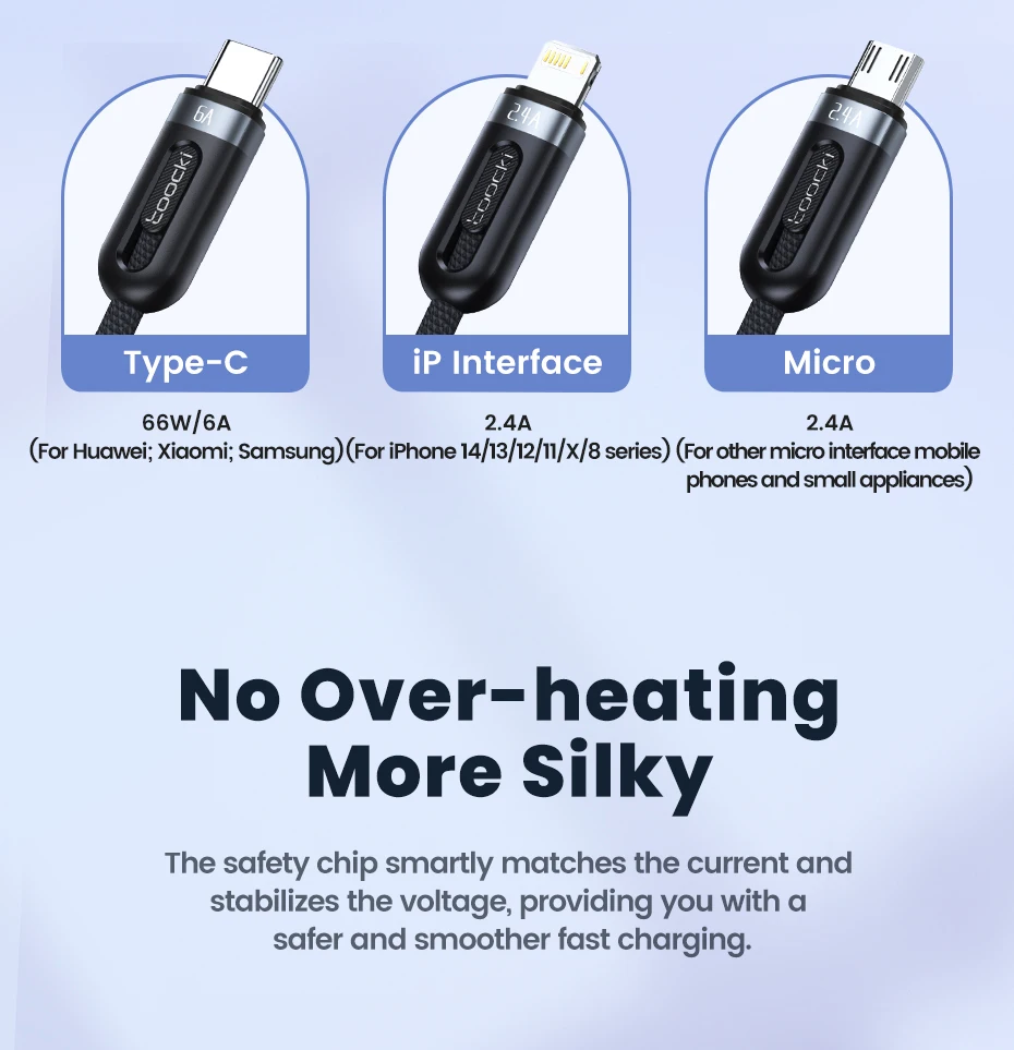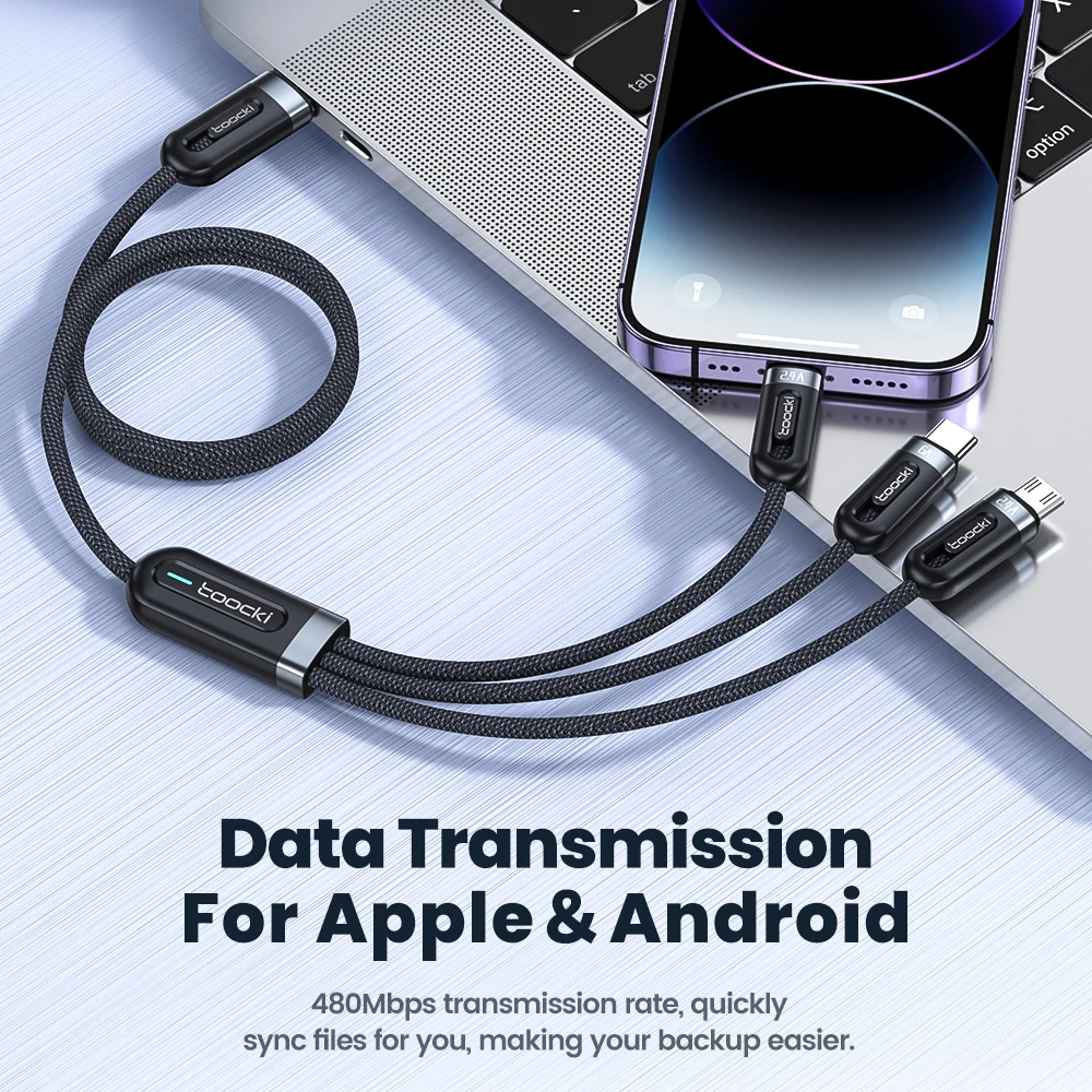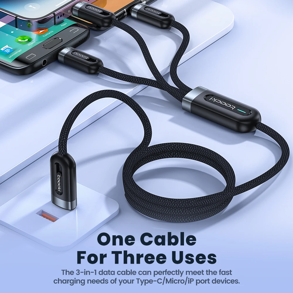 Comprar Toocki 66W 3 in 1 USB Cable For iPhone 14 13 12 Pro Max 6A USB Micro Wire Type C Cable For Huawei Samsung Xiaomi Poco Data Cord