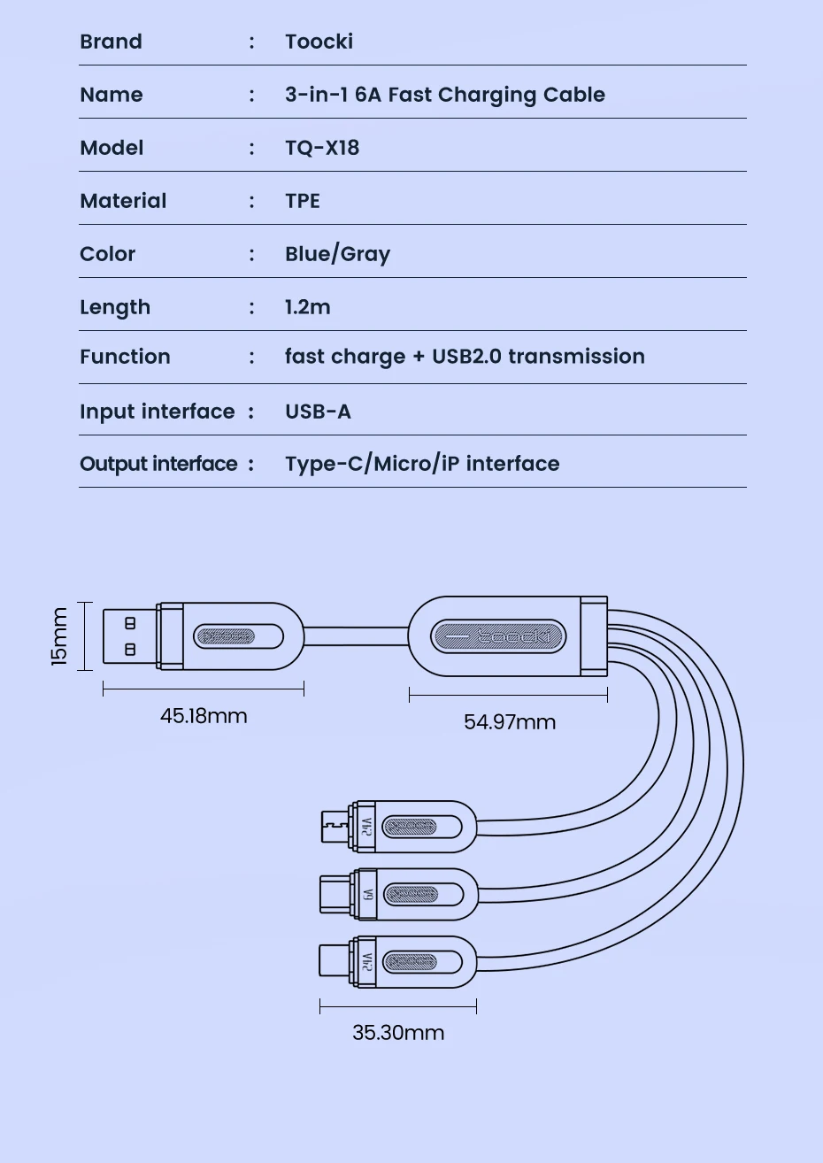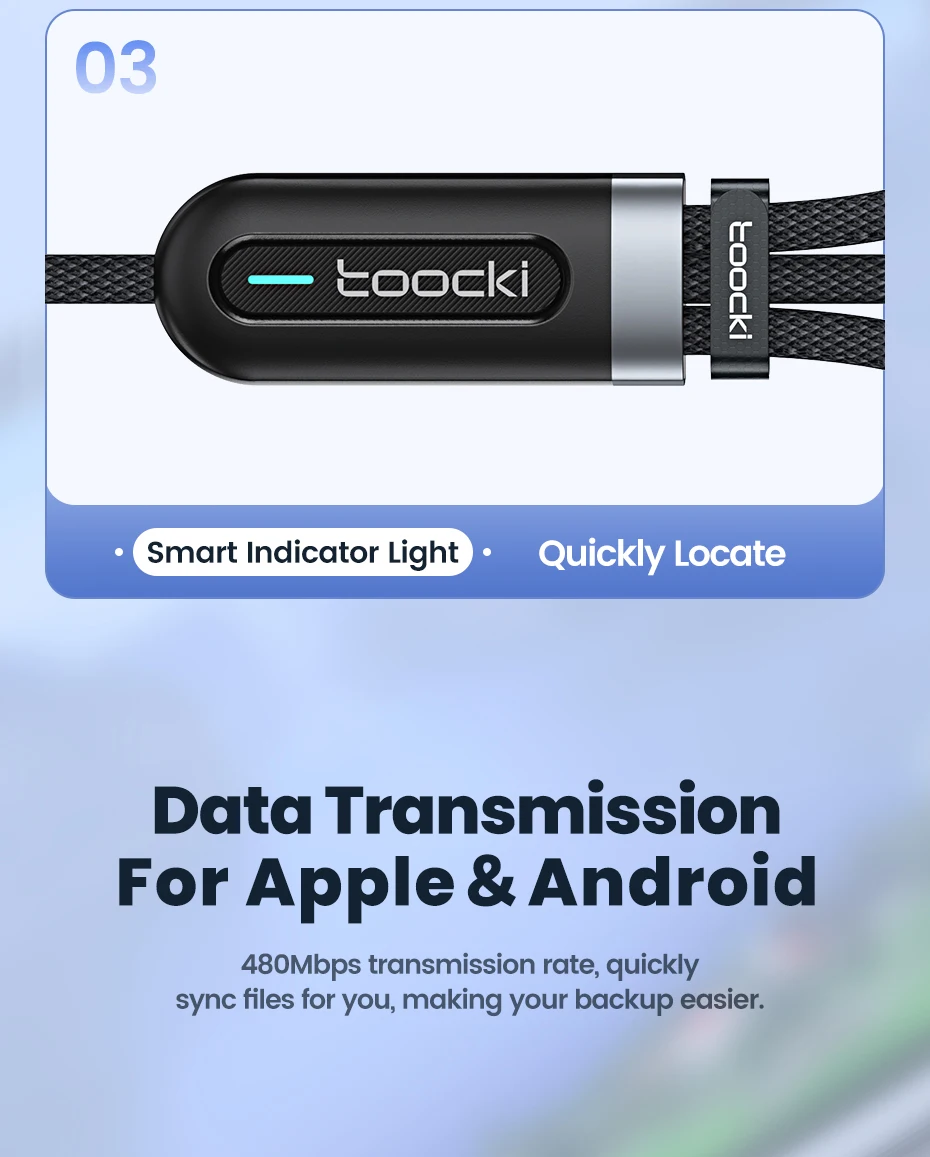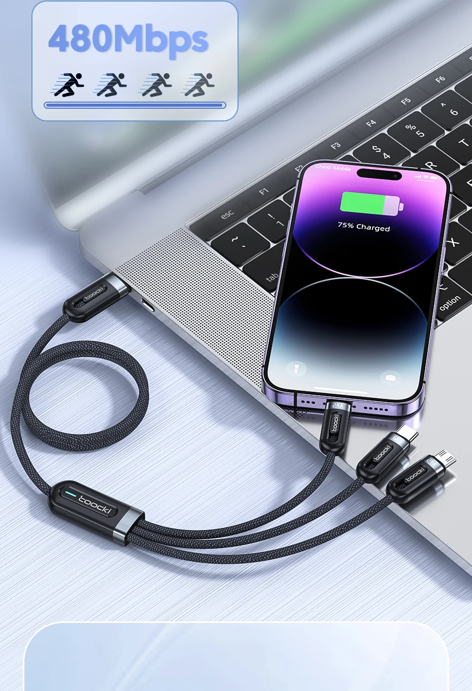 Comprar Toocki 66W 3 in 1 USB Cable For iPhone 14 13 12 Pro Max 6A USB Micro Wire Type C Cable For Huawei Samsung Xiaomi Poco Data Cord