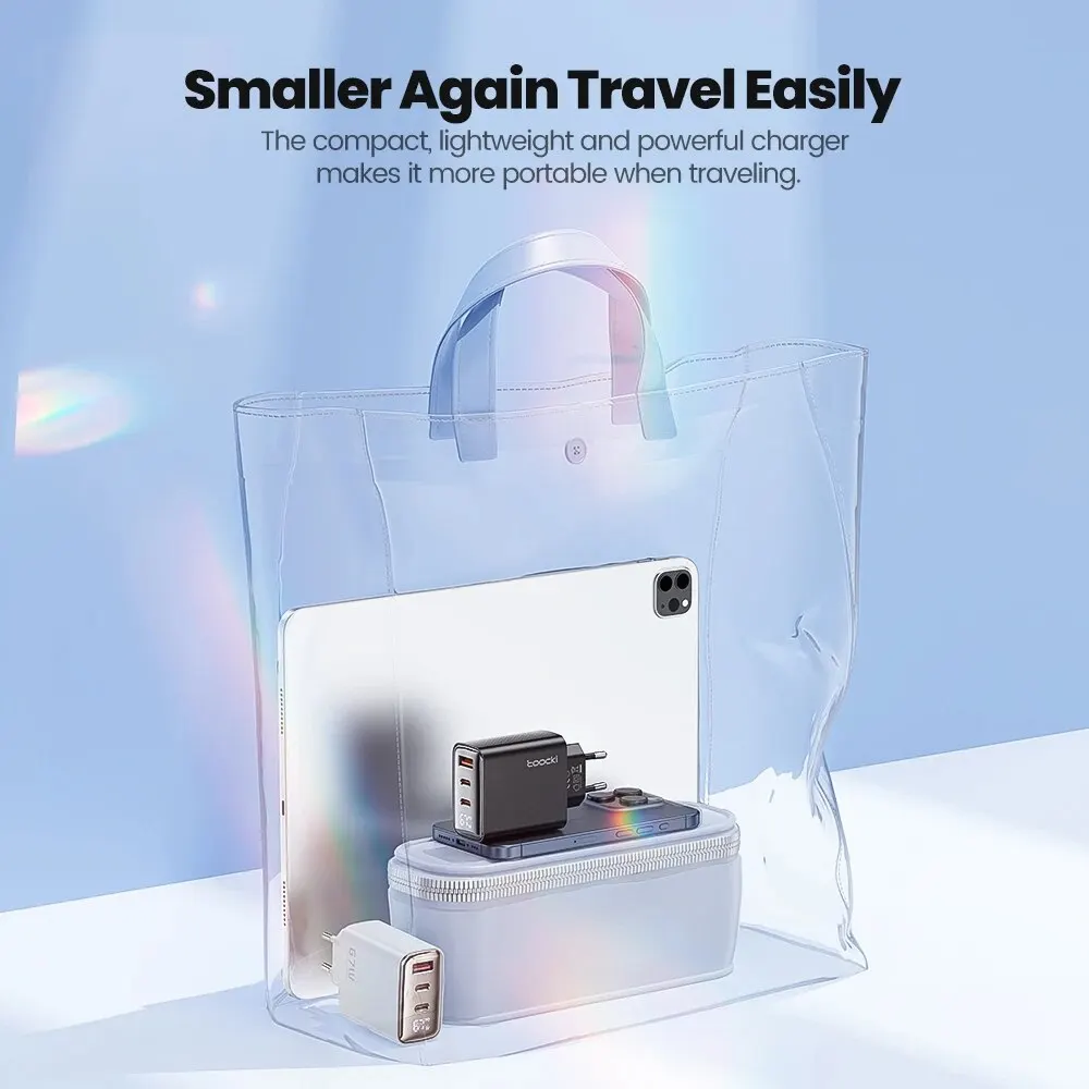El cargador compacto, liviano y potente lo hace más portátil cuando viaja.