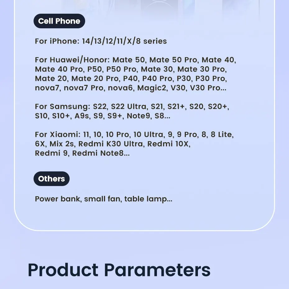 Admite modelos de carga súper rápida de 66 W: HUAWEI P50, P50 Pro, Mate 40 Pro, Mate 40 Pro +, Mate 40 RS Porsche, Nova 10, Nova 9, Nova 8, nuevo 8 Pro, nuevo 8 SE, Honor 70, 60 Pro, etc.