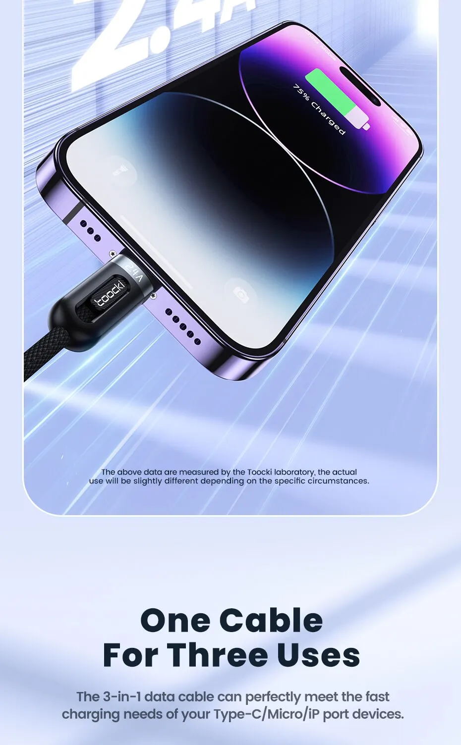 Nota :1. Para lograr una carga rápida, debe emparejarla con un cargador que admita carga rápida, y el nivel de batería del teléfono es inferior al 30% y el teléfono admite carga rápida, puede usar la interfaz tipo C de nuestro cable de datos para lograr una carga rápida.