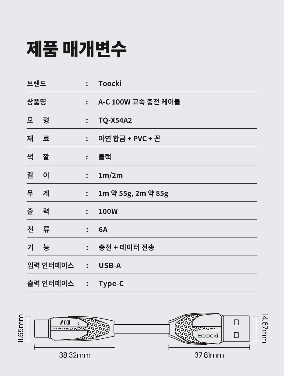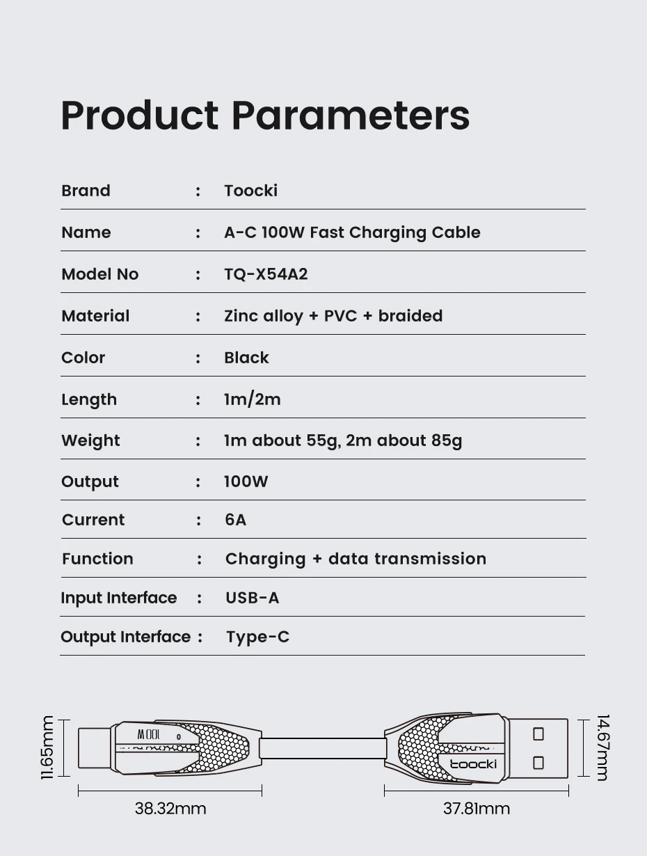 Peso: 1m aproximadamente 55g, 2m aproximadamente 85g