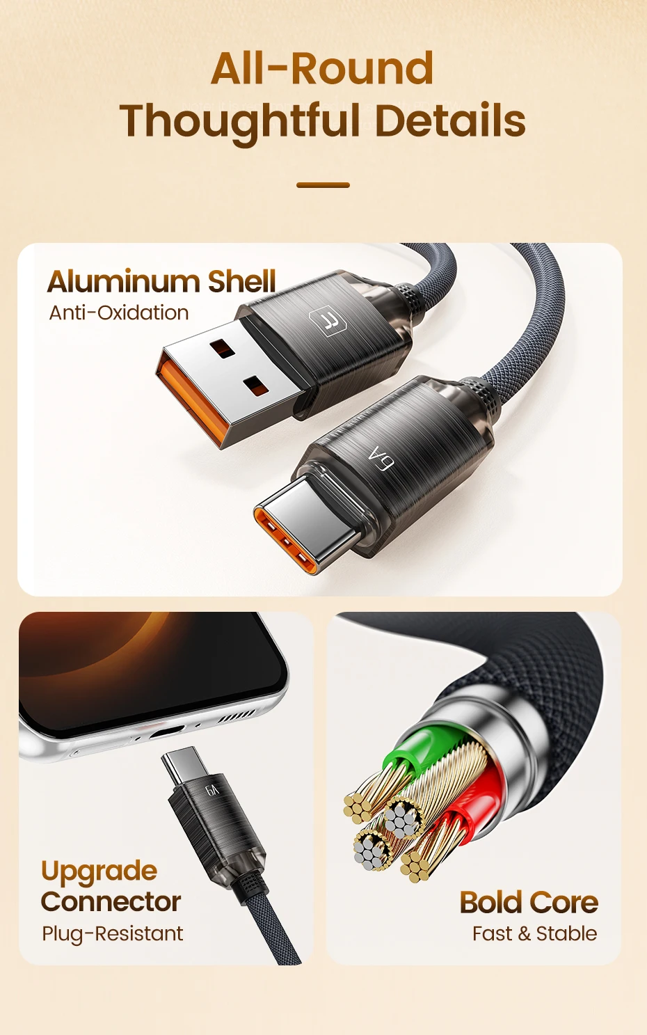• Corriente máxima 6A: Con una corriente máxima de 6A, este cable puede manejar dispositivos de alta potencia como Huawei Honor Xiaomi Samsung, asegurando una carga rápida y eficiente.