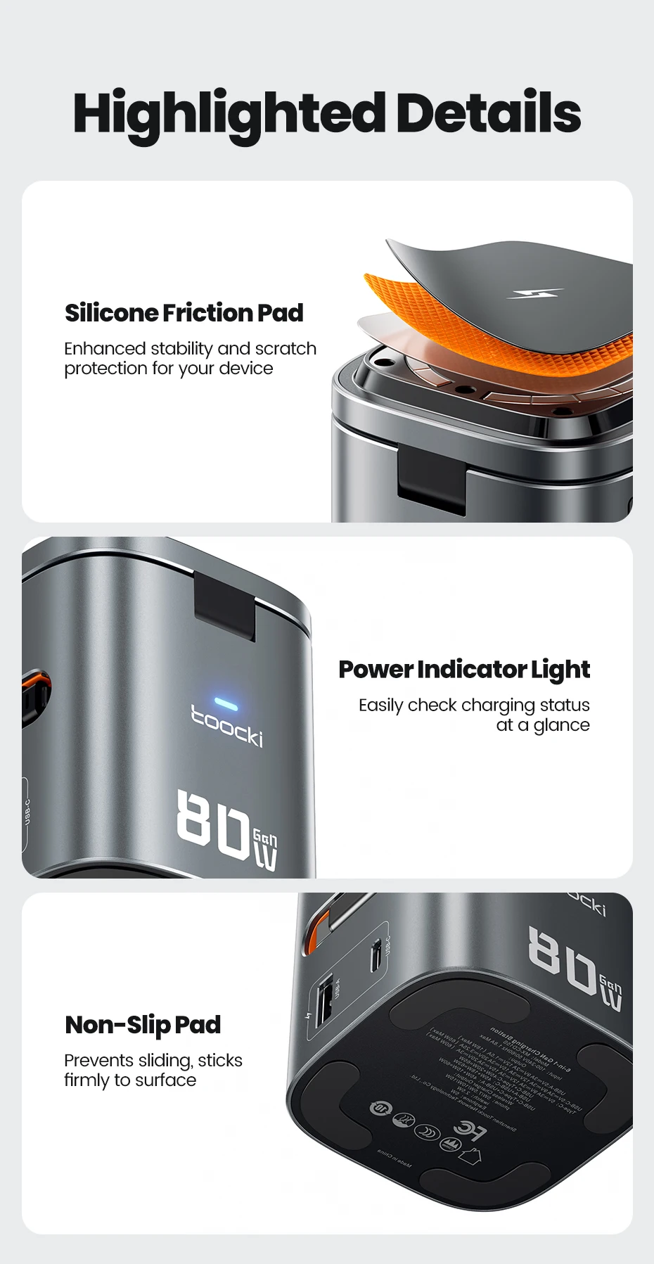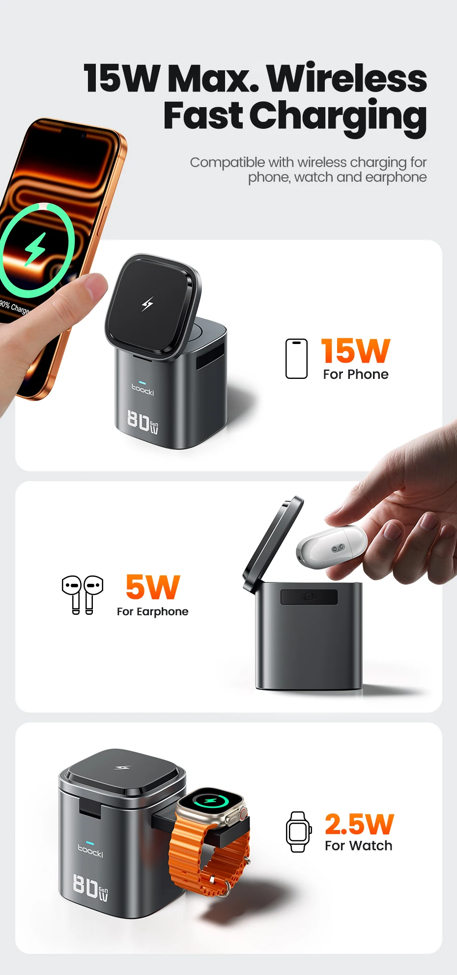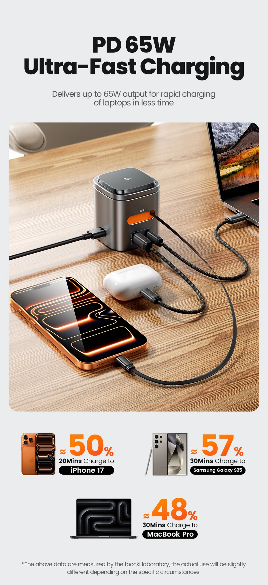 3.Carga rápida PD de 65 W, potencia de salida máxima de 65 W, admite carga rápida de computadora portátil, reduce el tiempo de espera