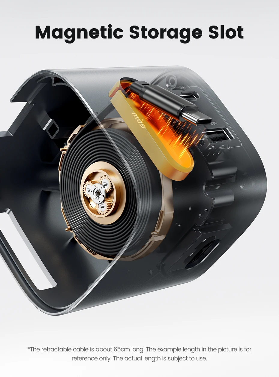 6: Cable retráctil incorporado, dibujo y tracción suaves, cable de carga retráctil incorporado, estiramiento suave; Ajuste de longitud de varios niveles para una carga más conveniente y flexible