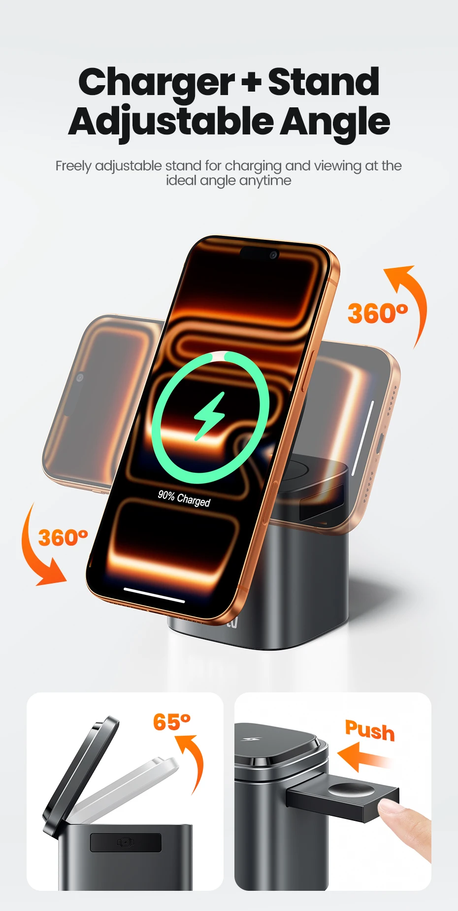 5.Potente atracción magnética, fijación estable, potentes imanes incorporados que se adhieren con precisión a los teléfonos para una carga rápida6.Ajuste de ángulo libre, ángulos de visión ilimitados, diseño ajustable de múltiples ángulos que satisface diferentes necesidades de visualización