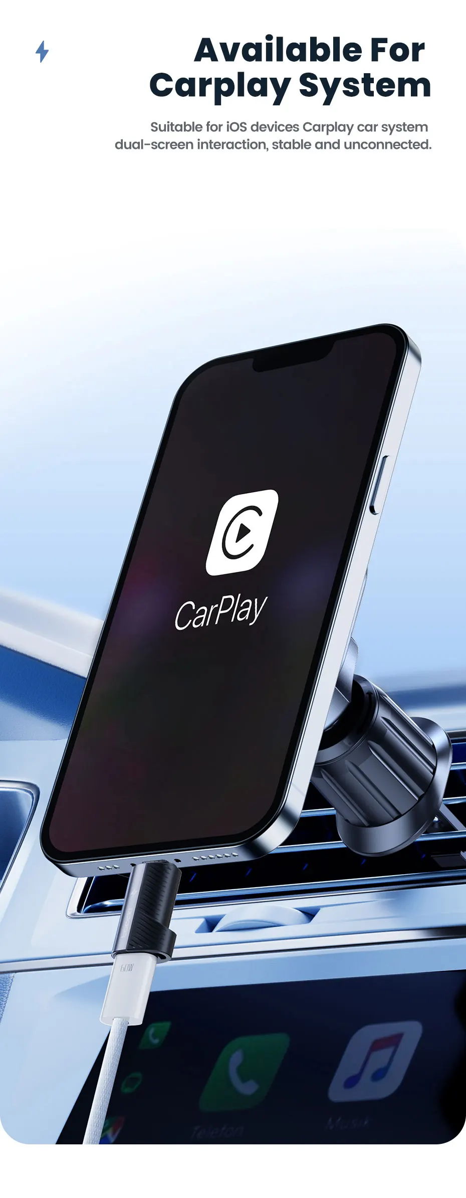 Sistema de CarplayAdecuado para dispositivos iOS Sistema de coche Carplay interacción de doble pantalla, estable y desconectado.