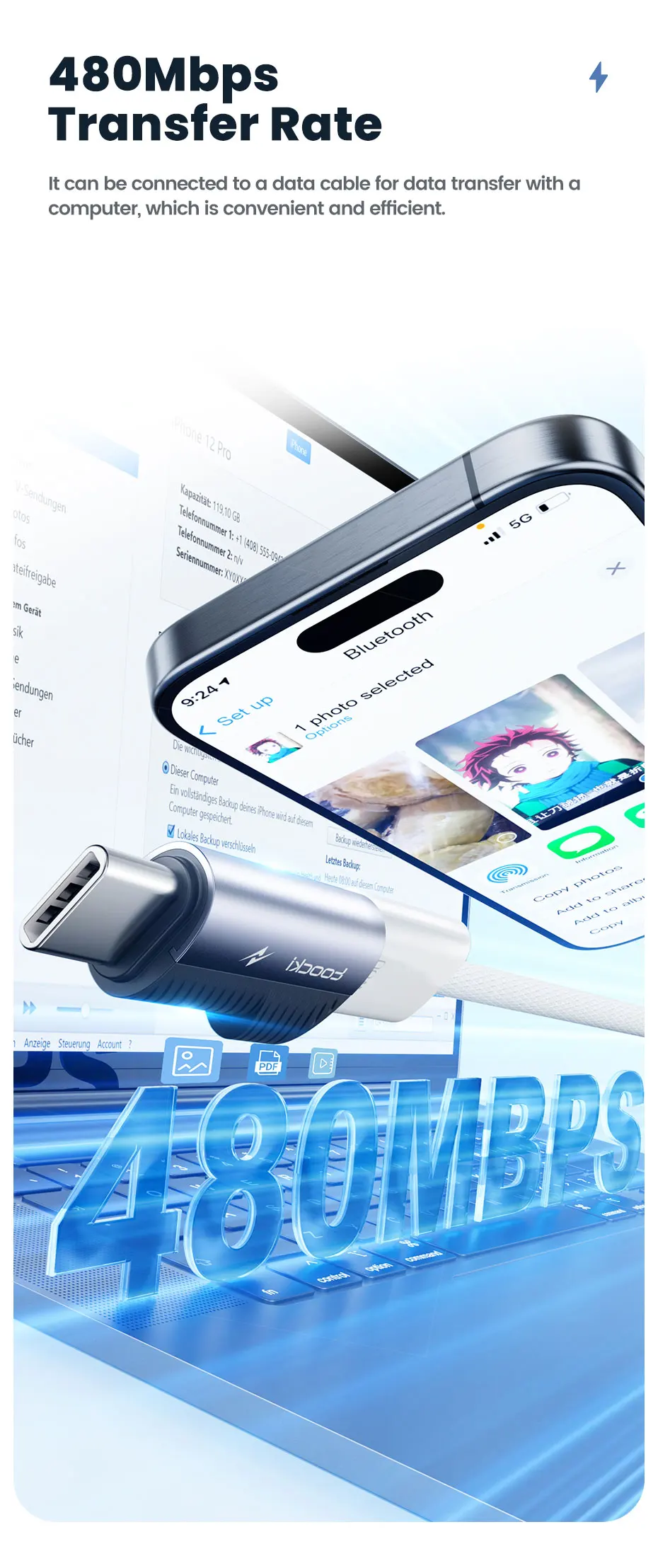 • Función de transferencia de datos :Además de la carga, este adaptador también permite la transferencia de datos, facilitando la sincronización de tus dispositivos y la copia de datos.