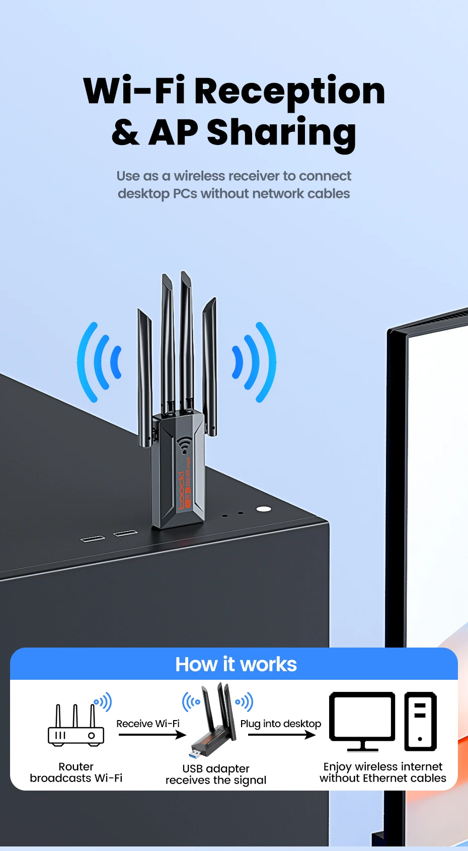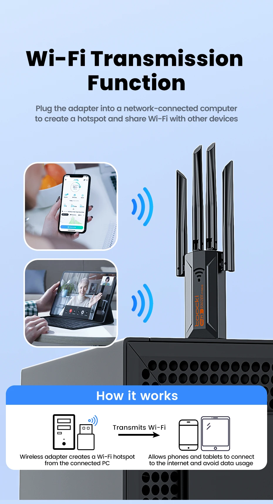 ✅ Antenas giratorias: la antena externa de alta ganancia ofrece una cobertura más amplia y una mayor penetración en la pared.
