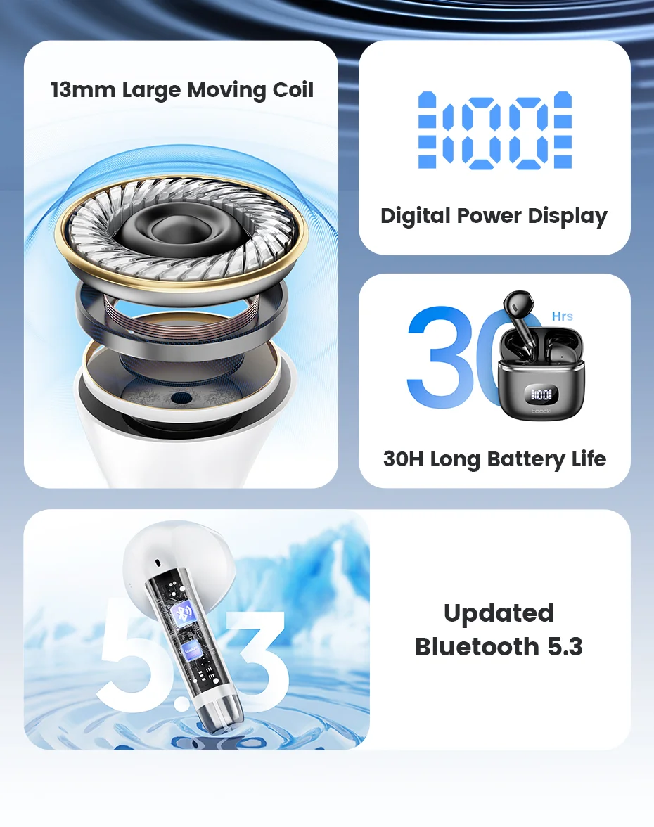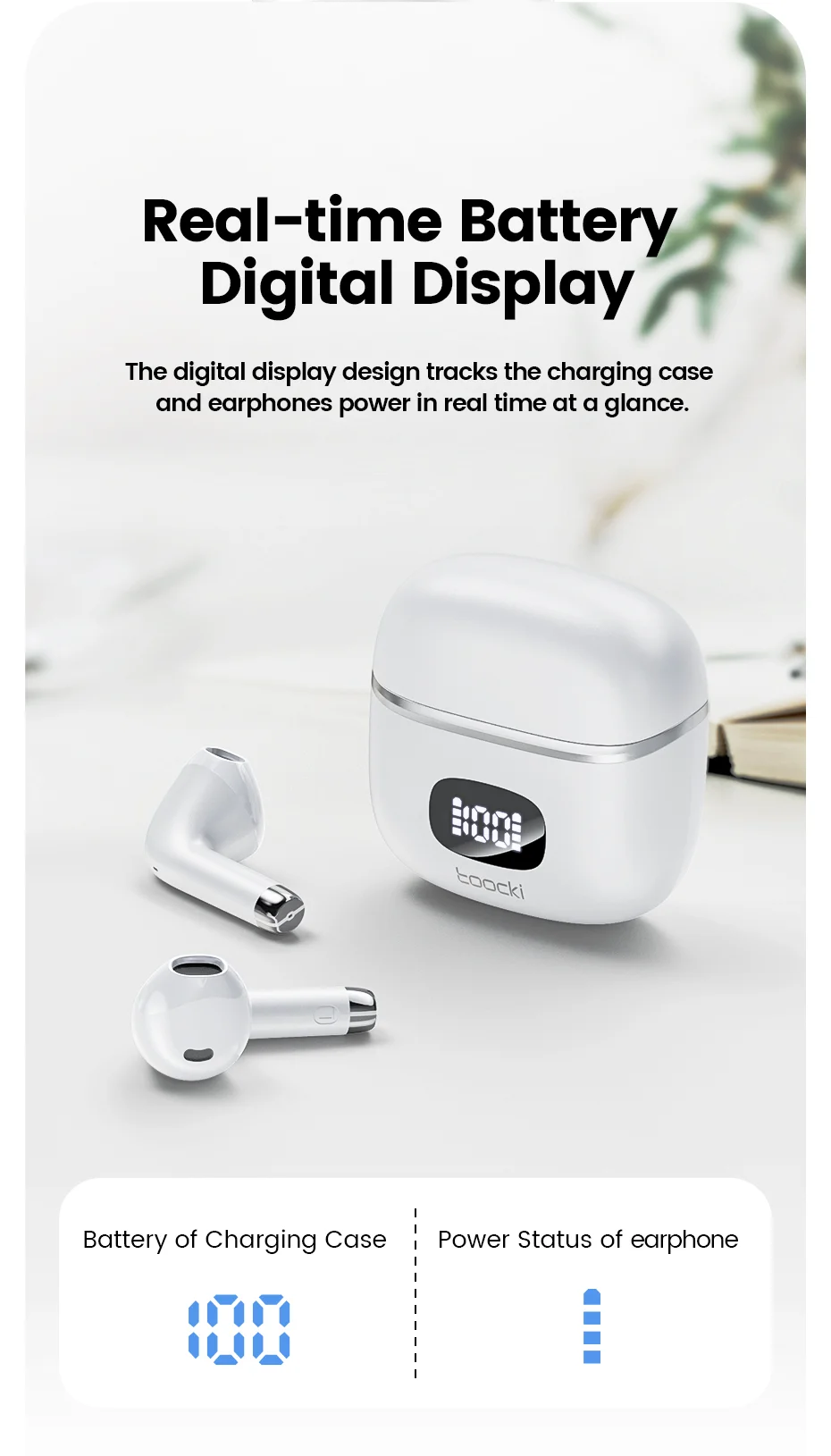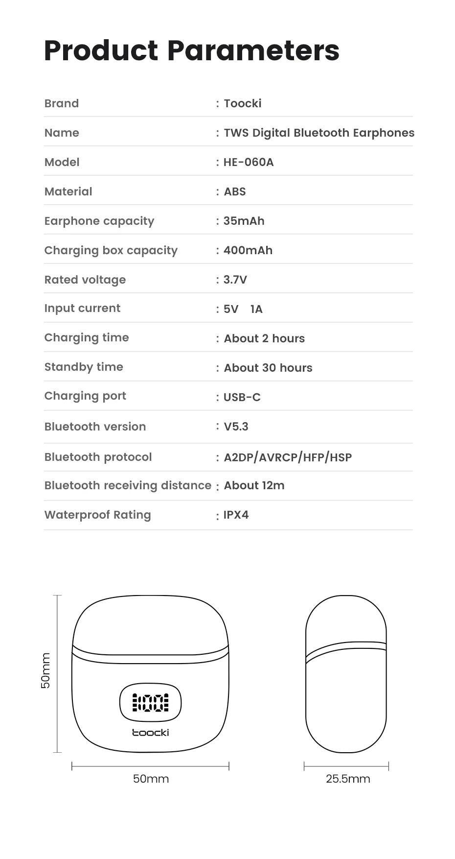 Comprar Toocki-auriculares inalámbricos TWS con Bluetooth 5,3, cascos intrauditivos deportivos con pantalla Digital, impermeables, para todos los teléfonos
