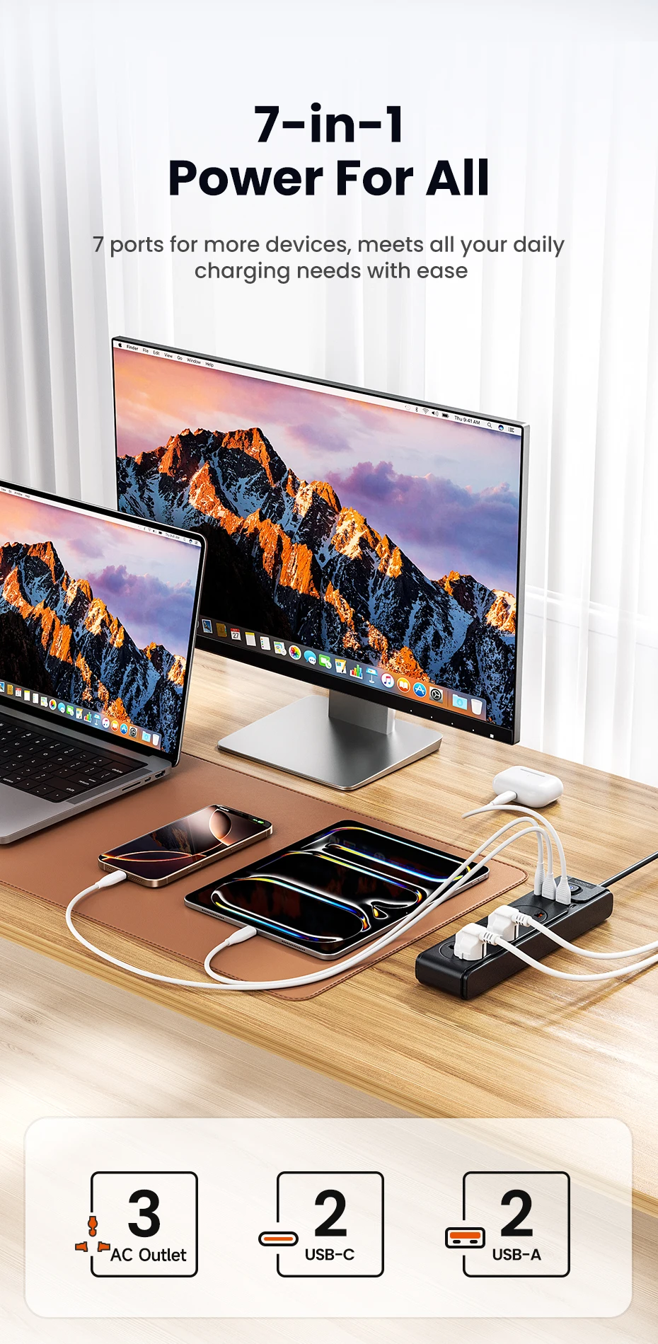 2.One-Stop Fast Charging, Universal Device CompatibilitySupports simultaneous charging for up to 7 devices, keeping desktops neater and power usage more efficient.