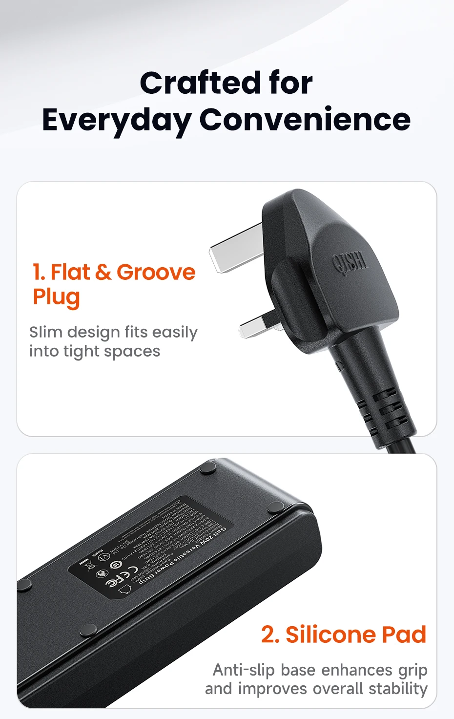 ✅Non-slip silicone pads: Keep the power strip stable without slipping, fitting tightly on tabletops.