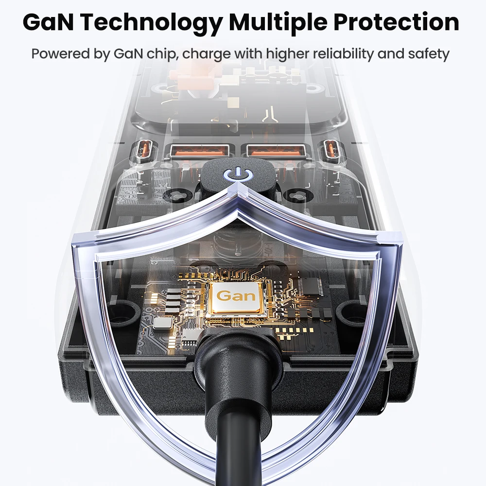 Adopts GaN (Gallium Nitride) chip for more reliable and safer charging, featuring: