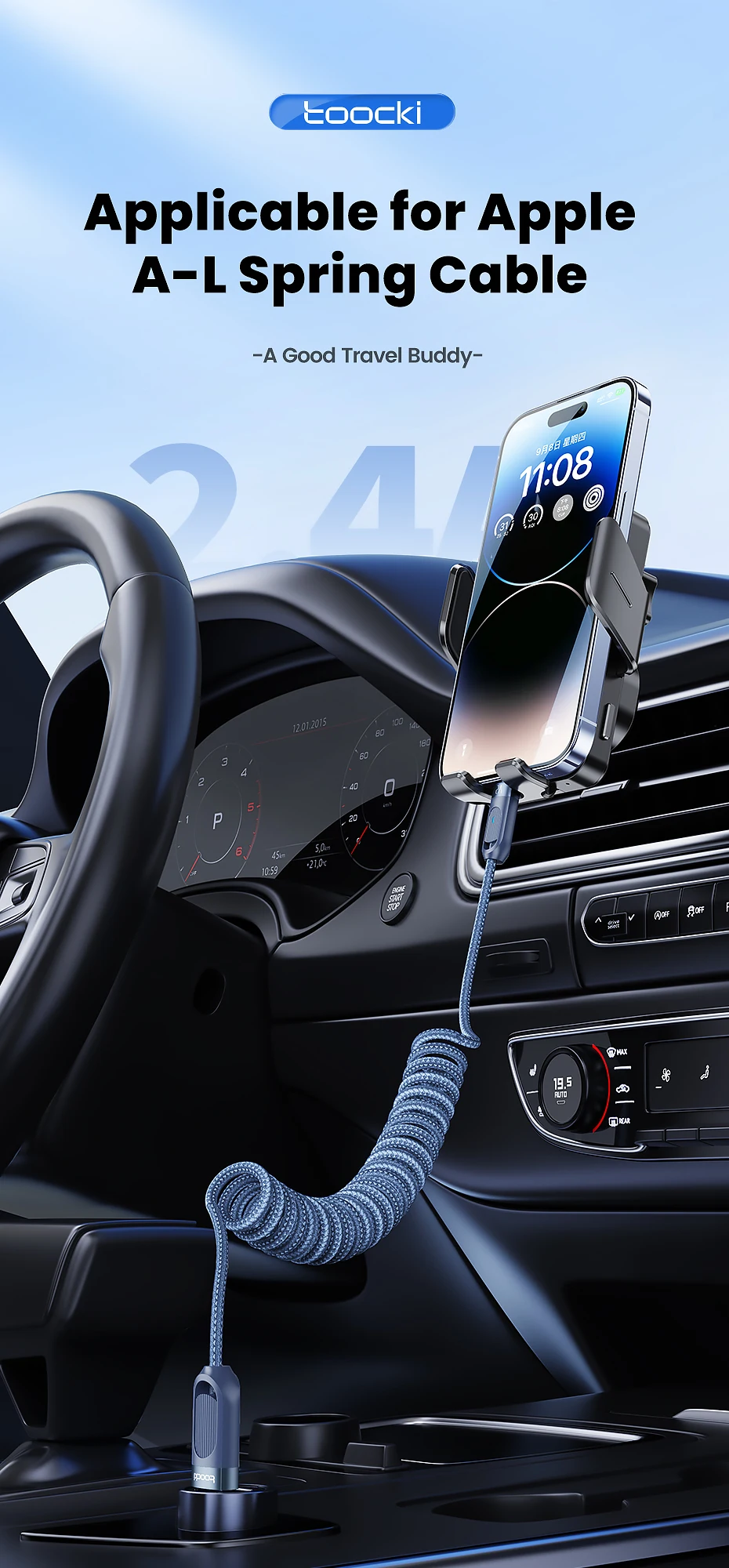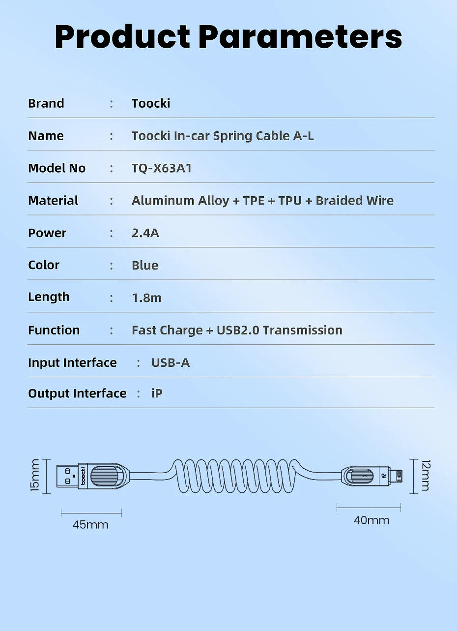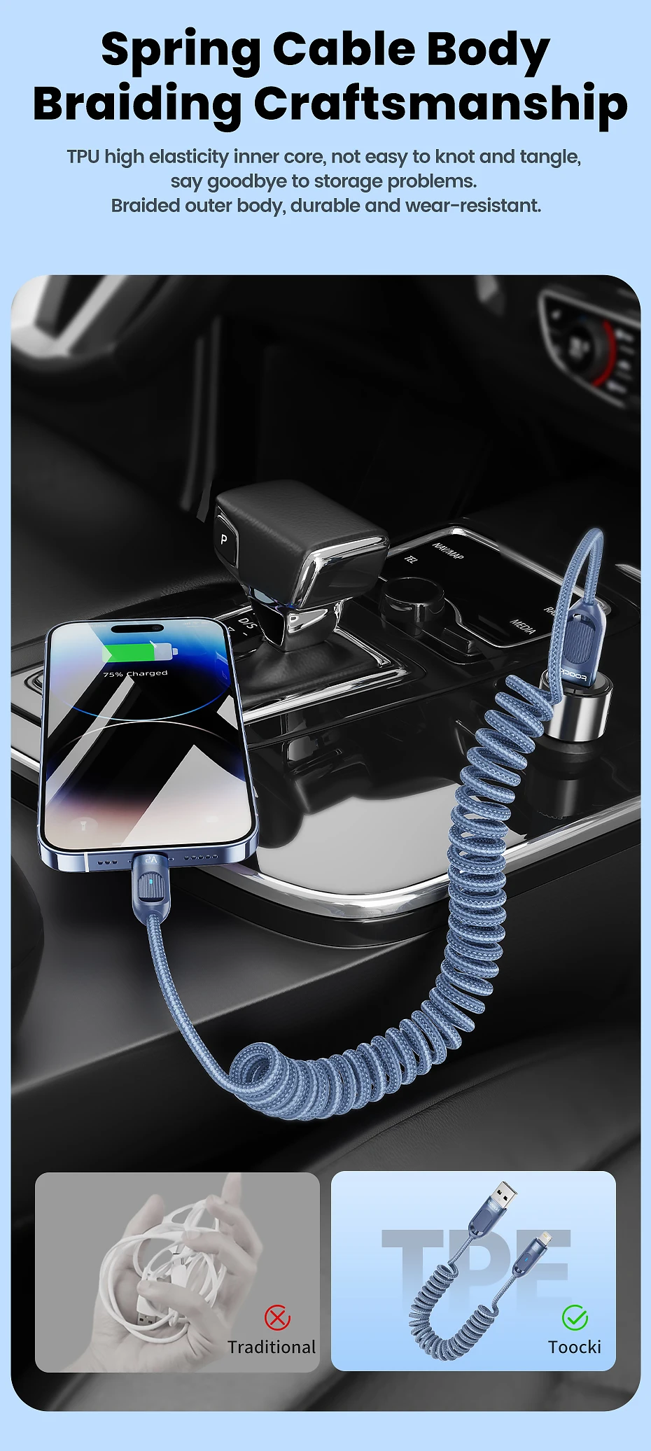 Nombre: Toocki In-Car Cable de resorte A-L