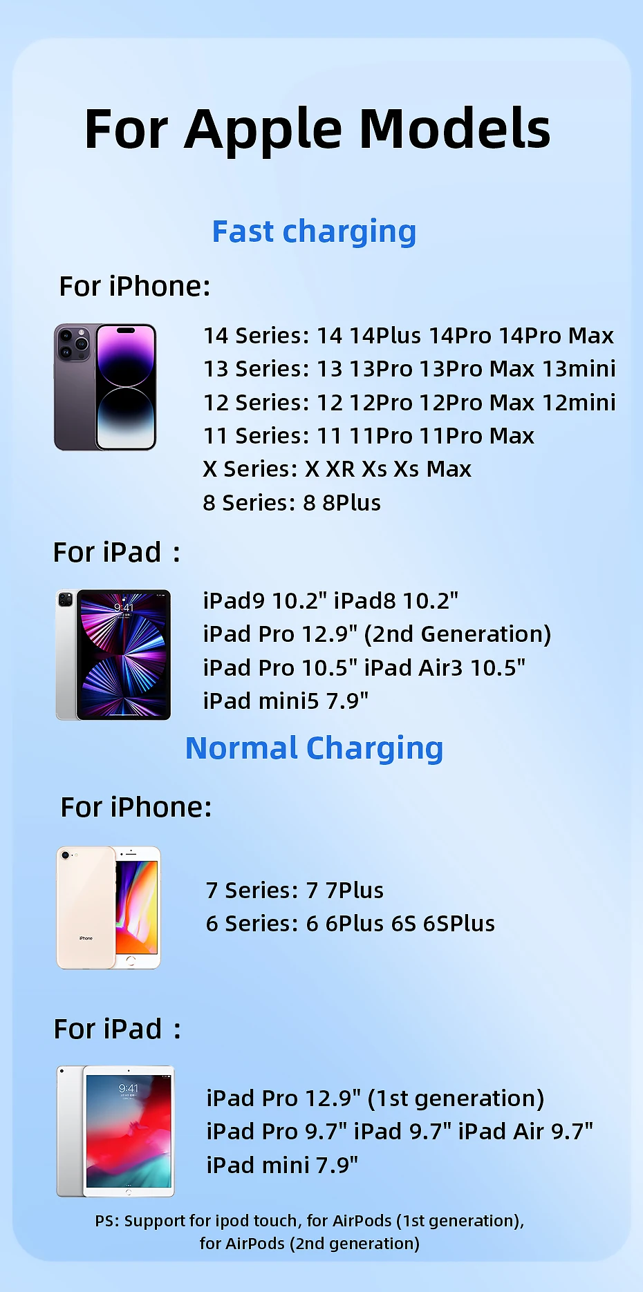 iPad Pro 12.9" (1a generación) iPad Pro 9,7" iPad 9,7" iPad Air 9,7" iPad mini 7.9"