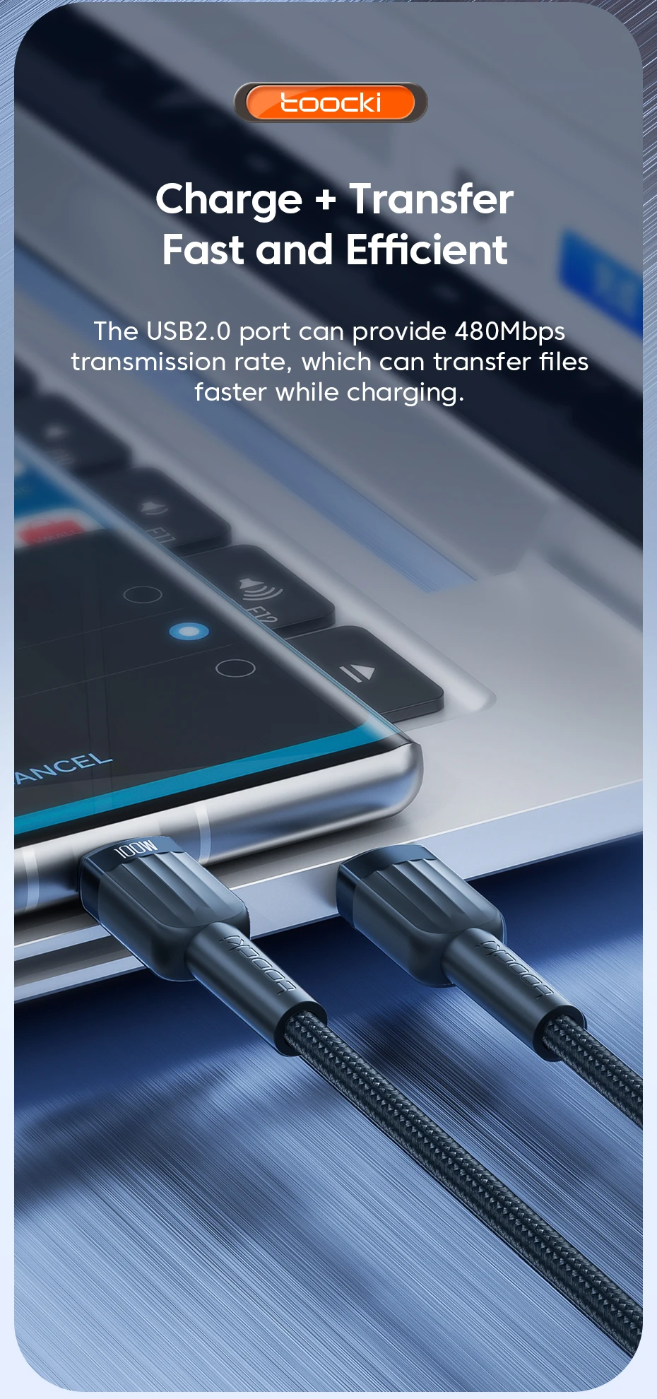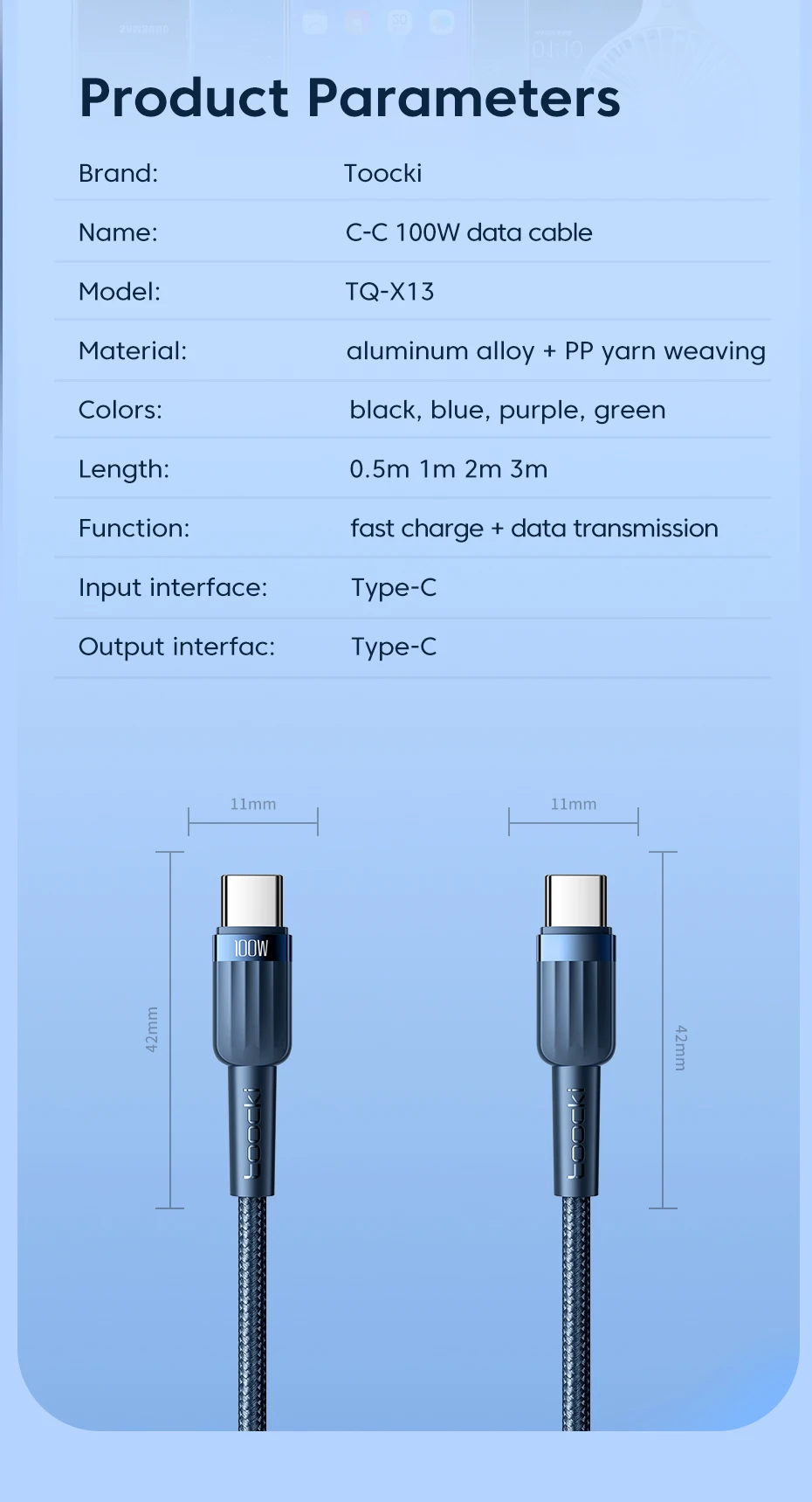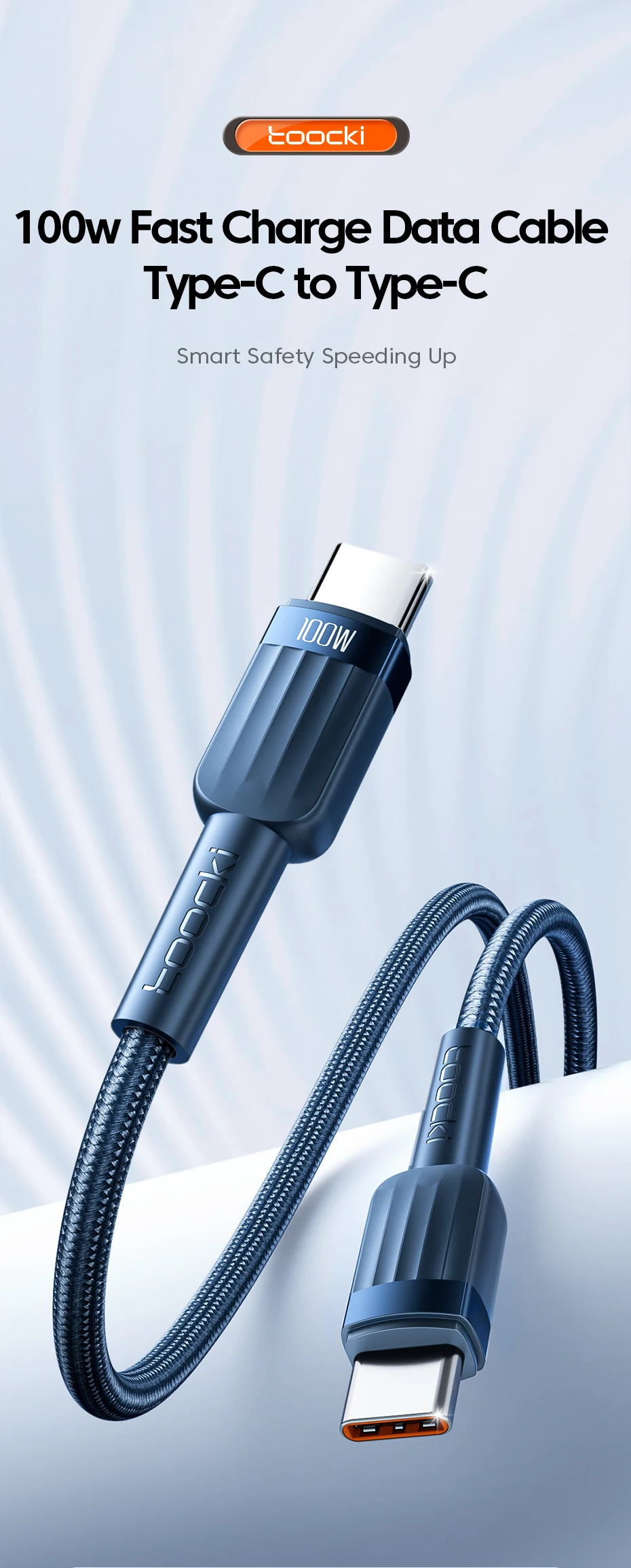 Comprar Toocki-Cable de carga rápida PD 100W USB C a USB C 5A para Macbook, iPad, Samsung, Xiaomi Poco, Cable de carga rápida tipo C