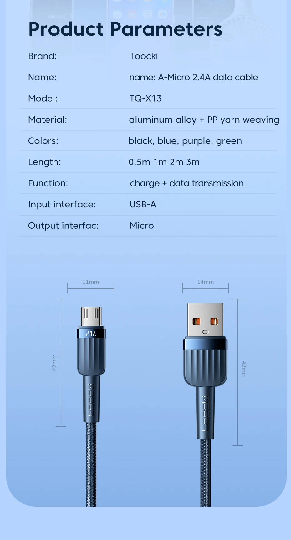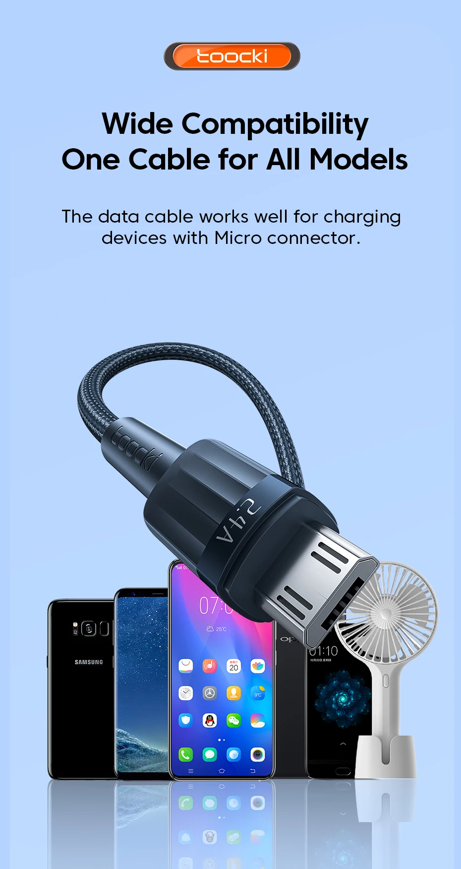 Comprar Toocki-Cable Micro USB 2.4A, Cargador rápido para Xiaomi Redmi, Samsung, Android, carga de transmisión de datos, Cable Micro USB