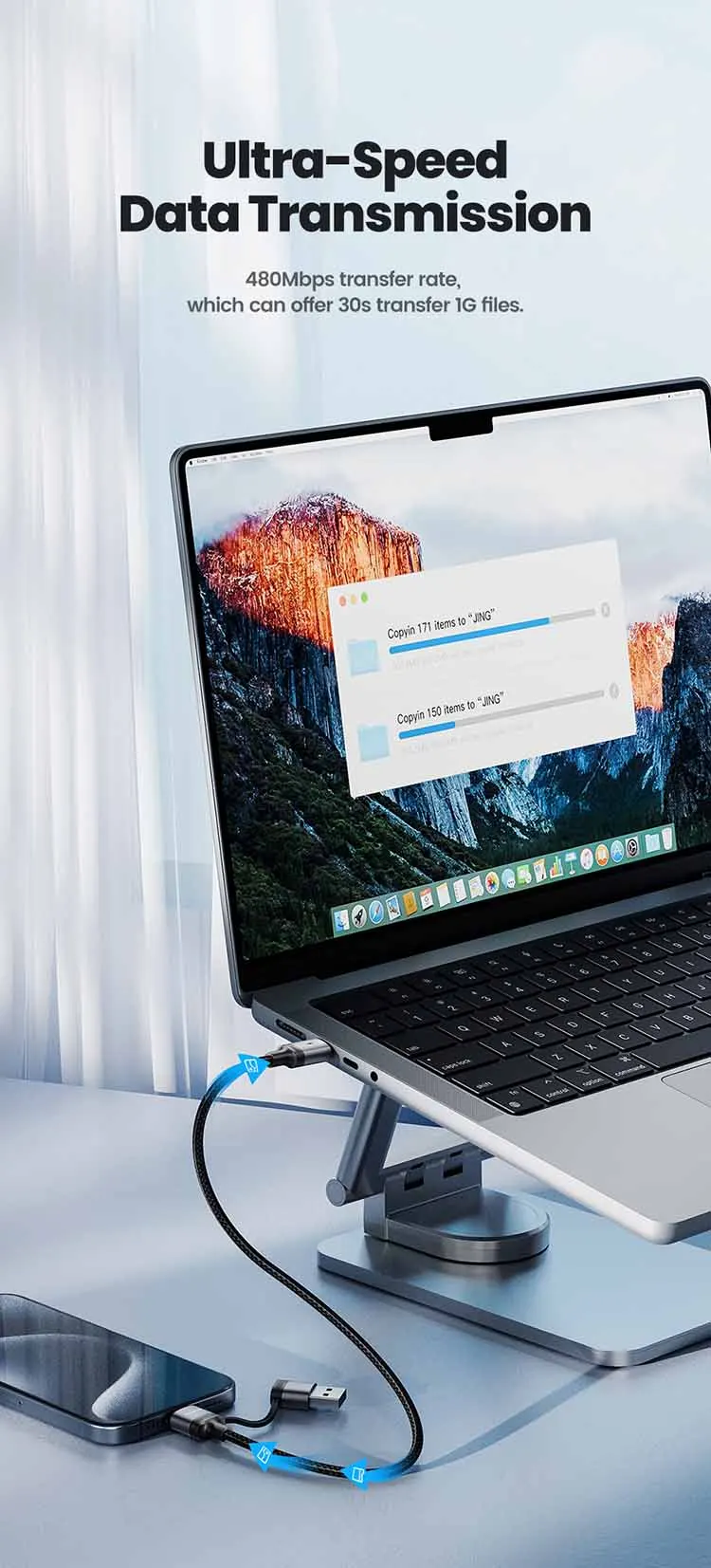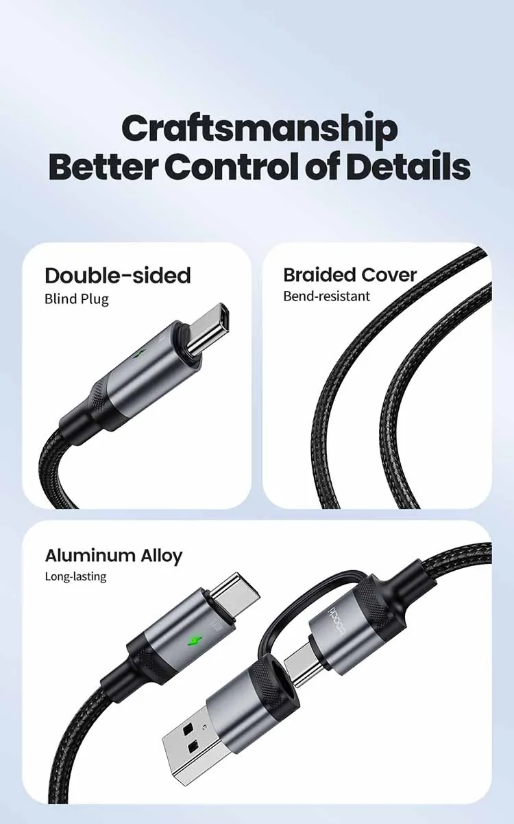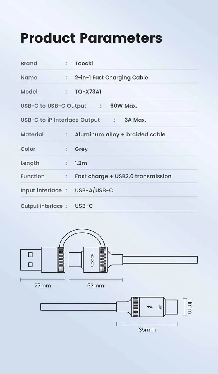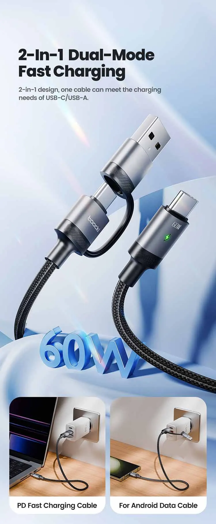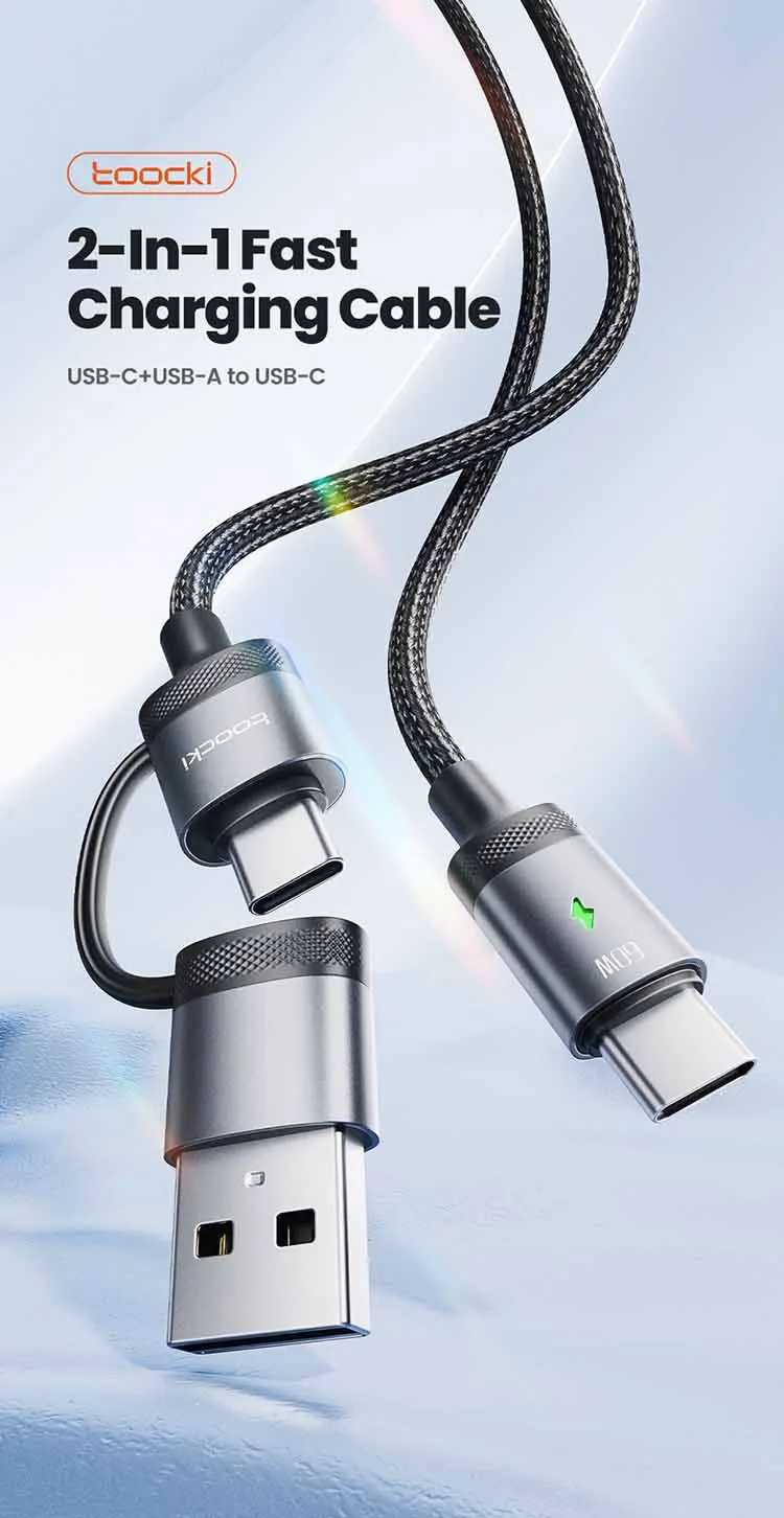 Comprar Toocki-Cable tipo C 2 en 1 para iPhone 15 Pro iPad Macbook PD 60W, Cable USB tipo C para Xiaomi Samsung C a C, Cable de carga rápida