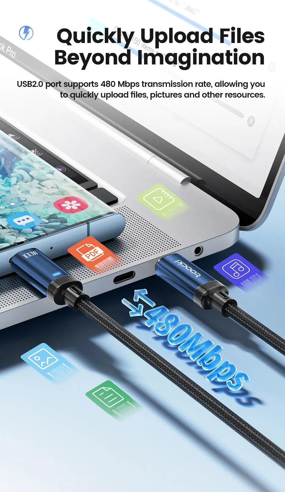 Se adopta un diseño de conector más estrecho y largo para mejorar la apariencia del cable de datos y la comodidad de uso.