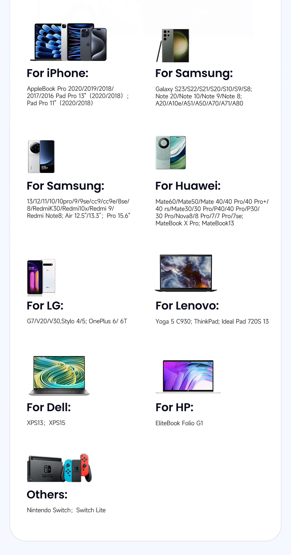 [Carga rápida de 100W]Para Portátiles La salida de alta potencia de 100W admite la carga rápida de portátiles, lo que le permite trabajar sin preocupaciones. Carga completamente el AppleBook 13 en 1,5 horas