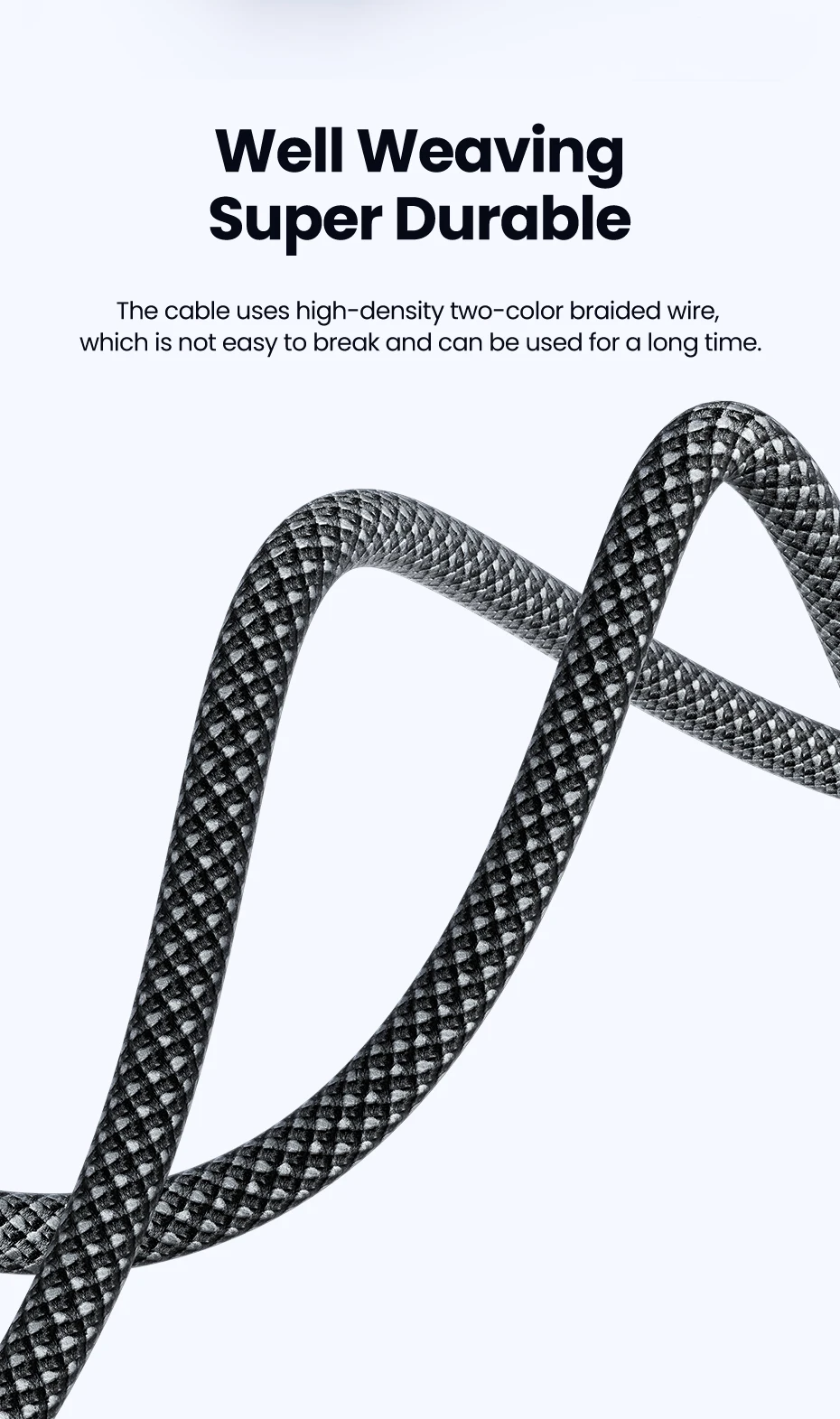 El cable utiliza alambre trenzado de dos colores de alta densidad, que no es fácil de romper y se puede utilizar durante mucho tiempo.