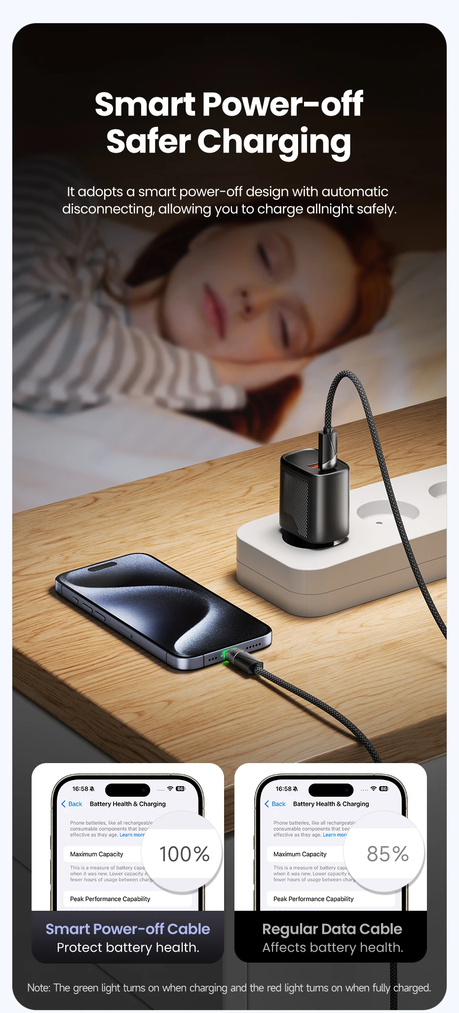 [Apagado inteligente, carga segura]Adopta un diseño de apagado inteligente con desconexión automática, lo que le permite cargar toda la noche de forma segura.