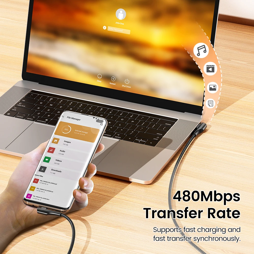 Nombre: Cable de carga rápida de doble codo A-C 3A