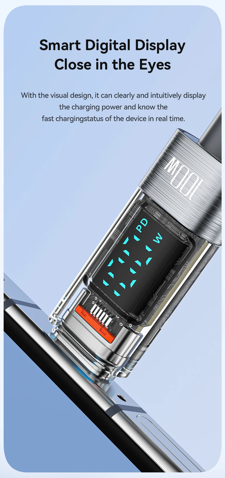Tipo 1: Cable de pantalla transparente USB C a USB C de 100W