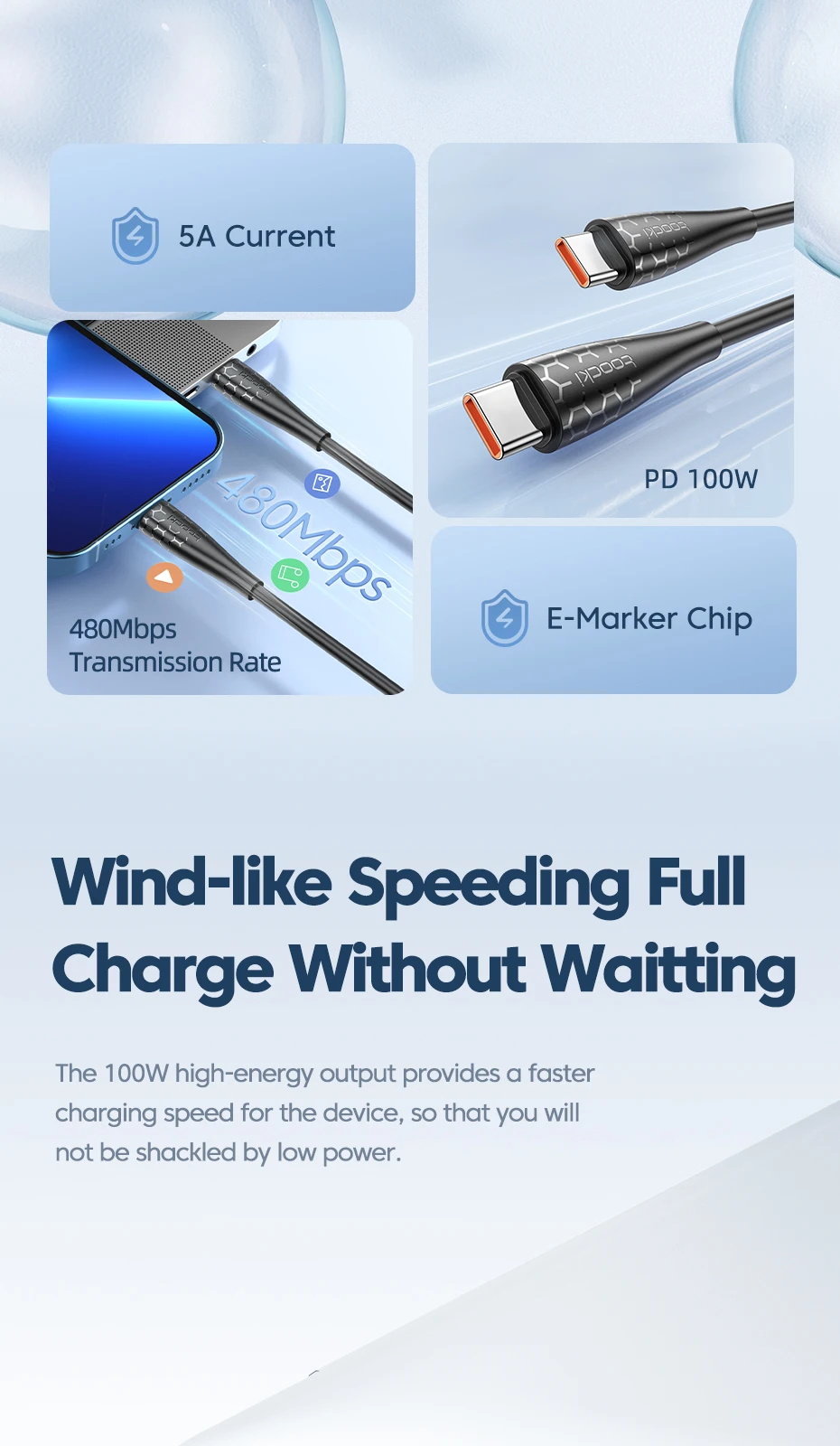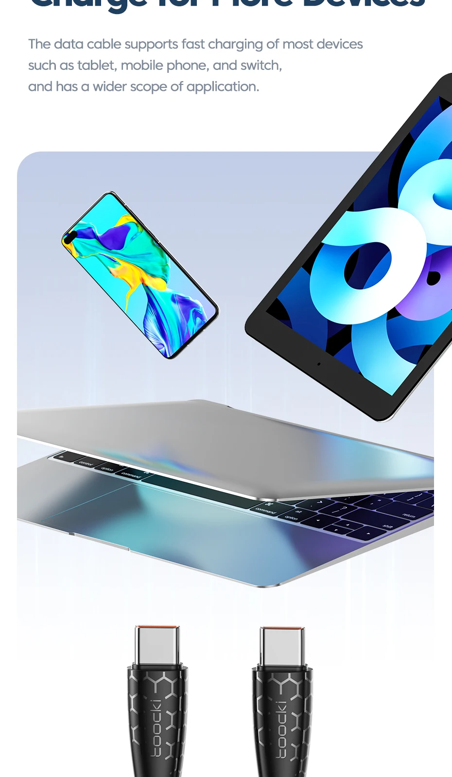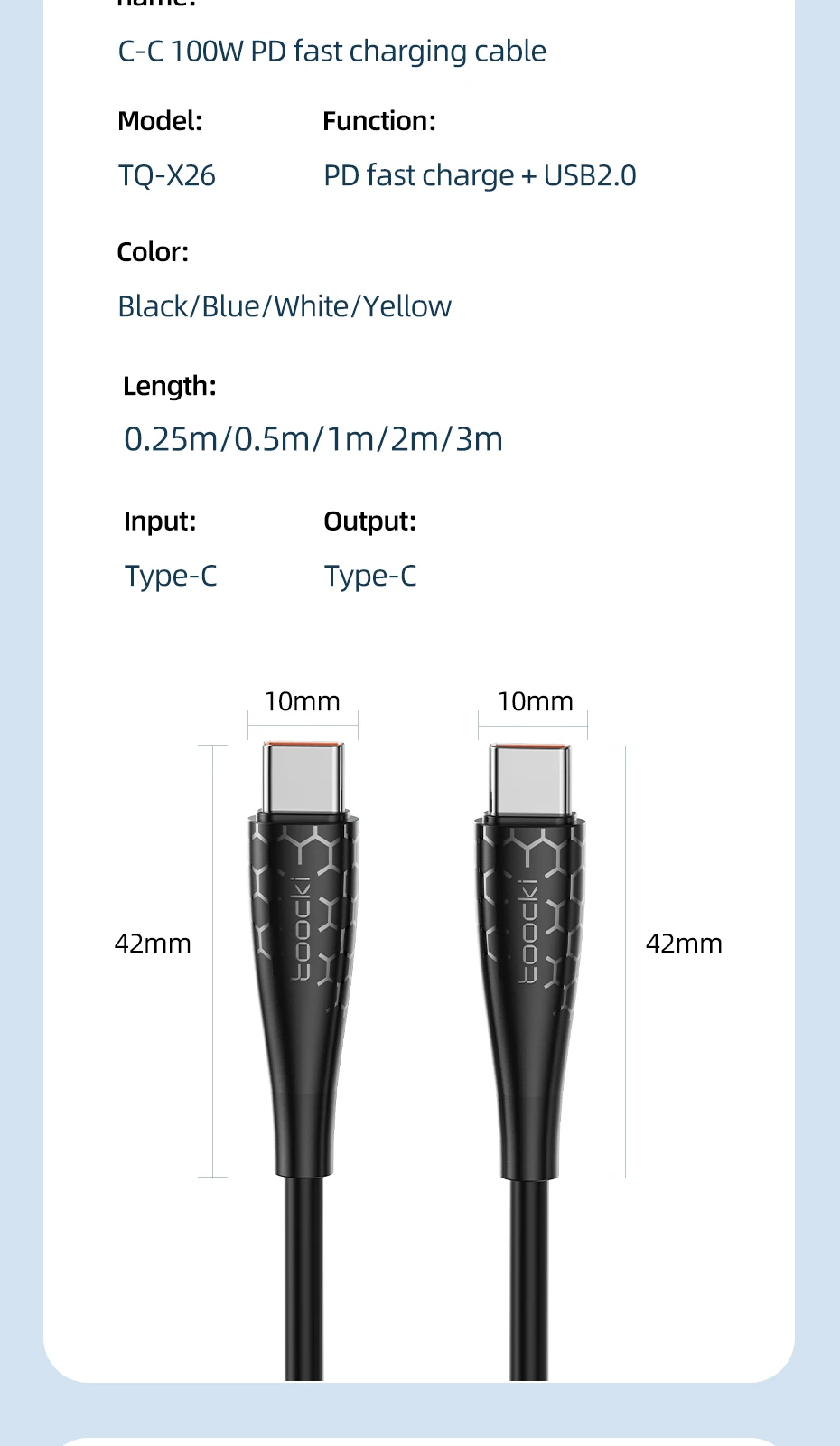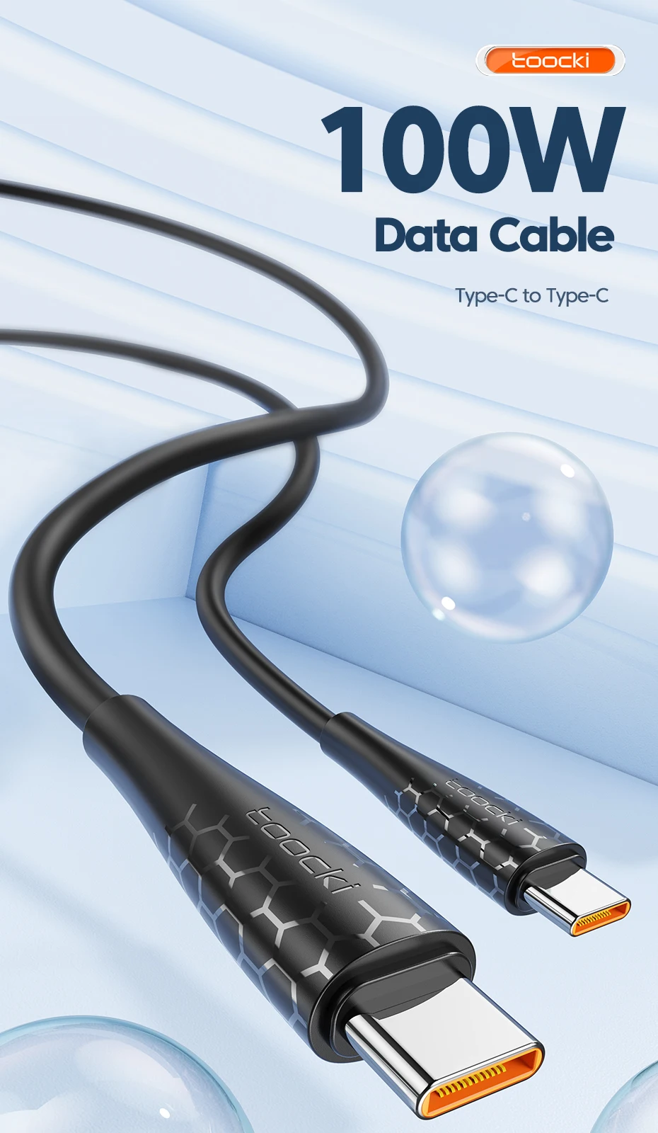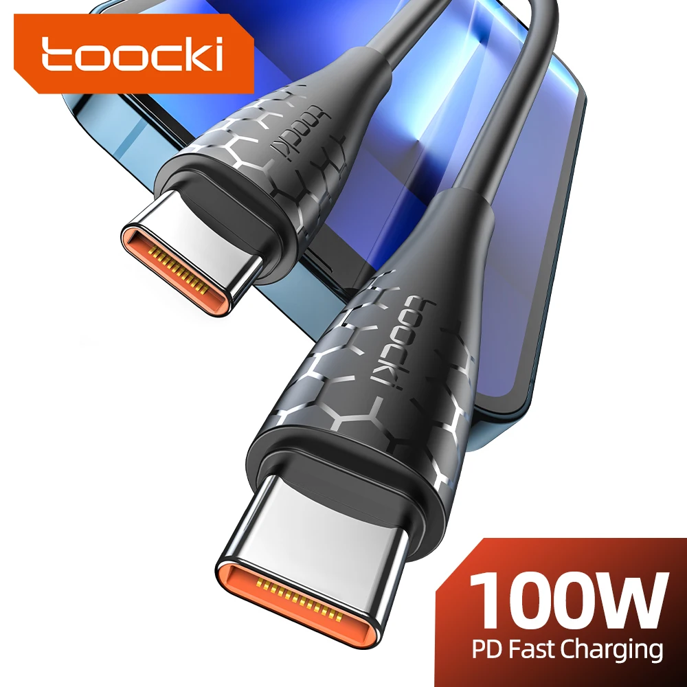 Comprar Toocki-Cable USB C a USB C de 100W para Macbook, Huawei, Xiaomi, POCO, Samsung 5A, PD, Cable de carga rápida, Cable de datos tipo C