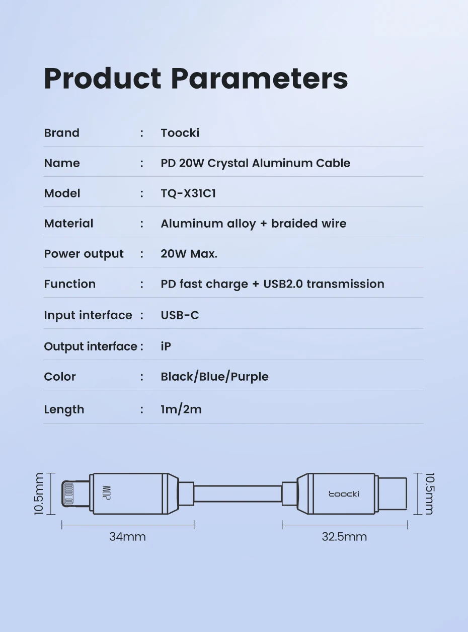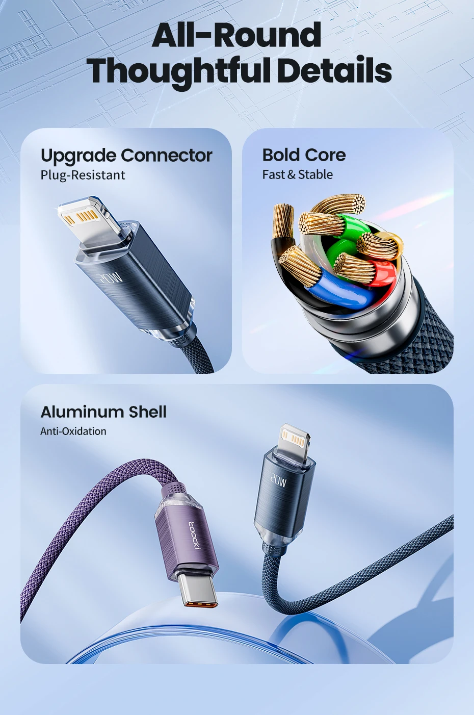 Comprar Toocki-Cable USB C a Lightning para iPhone, carga rápida tipo C, para modelos 14, 13, 12, 11 Pro Max, Mini, 8, 7 Plus, AirPods, iPad