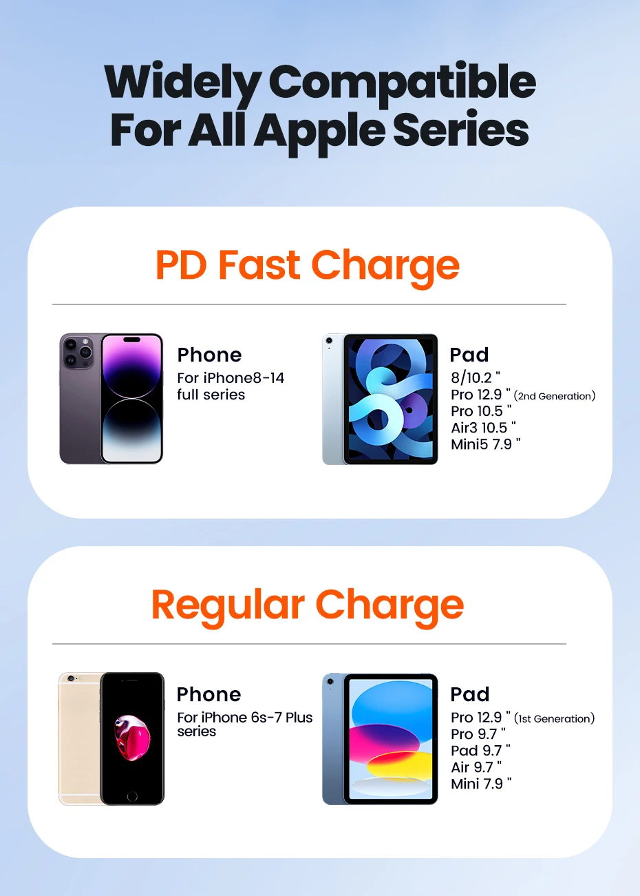 Compatible con PD 20W y PD 18W de carga rápida de la serie de teléfonos móviles Apple, tarda 30 minutos de carga a 60%.
