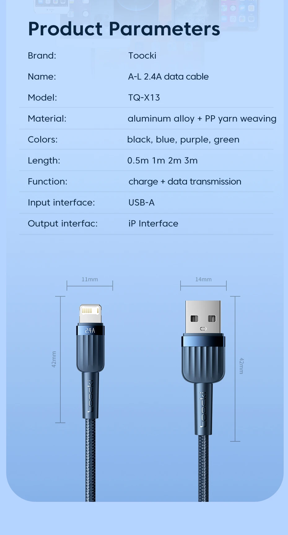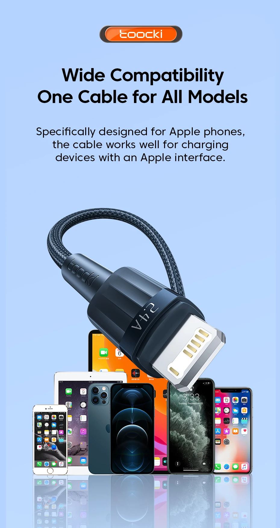 Comprar Toocki Cable USB para iPhone 14 13 12 11 Pro Max Mini XS XR 8 7 Plus SE 2.4A carga rápida para iPhoneCharger Cable USB Lightning