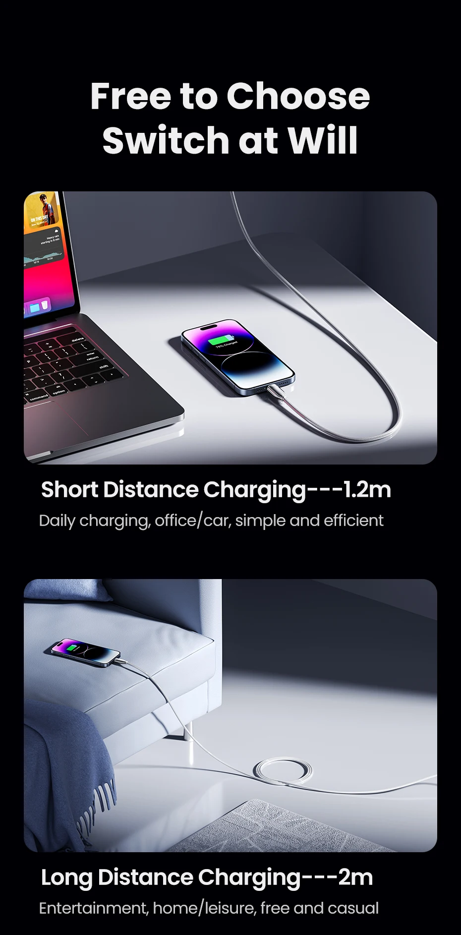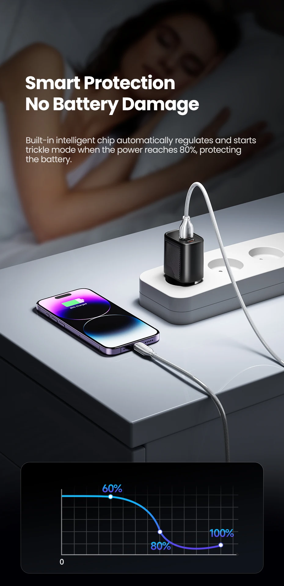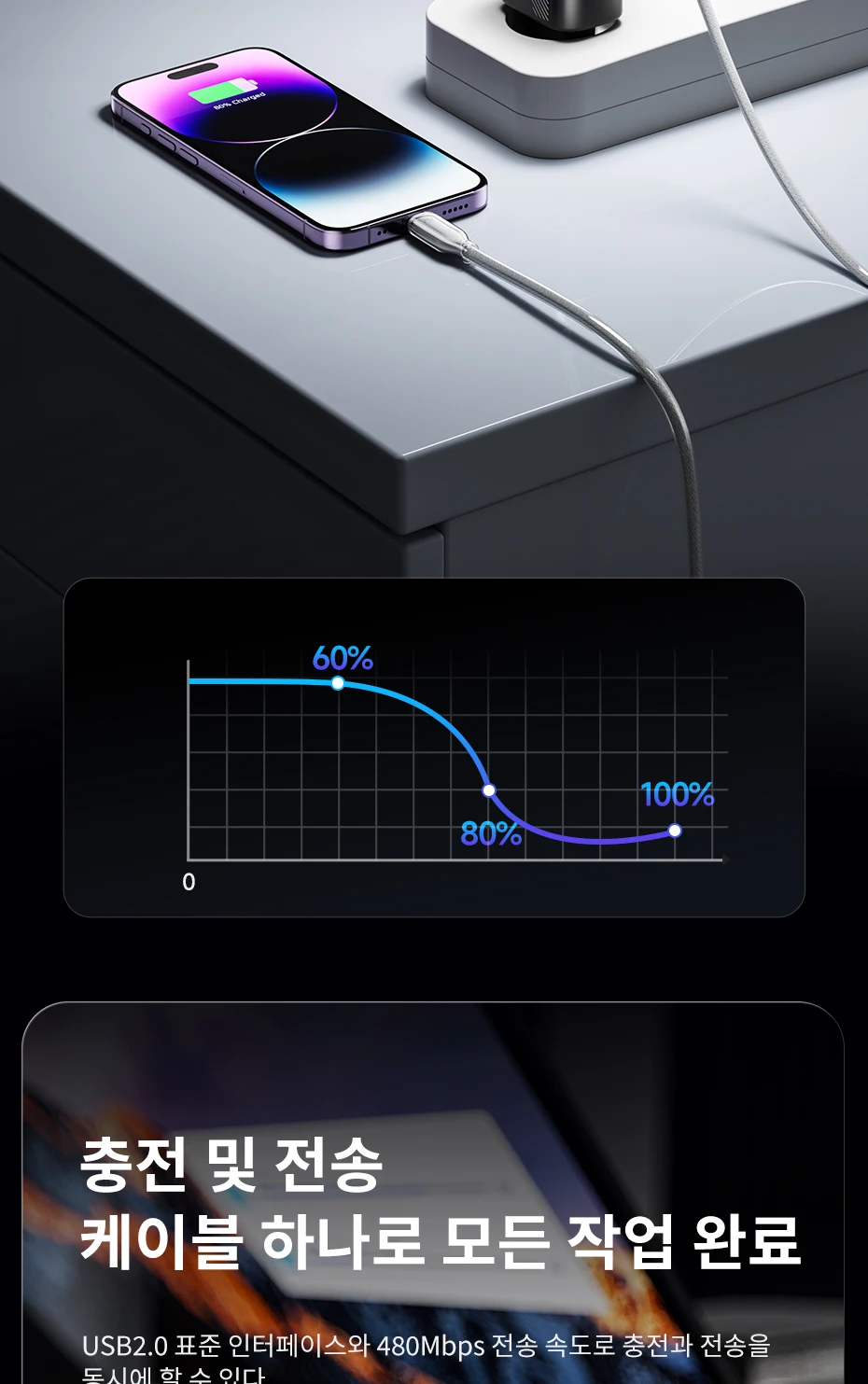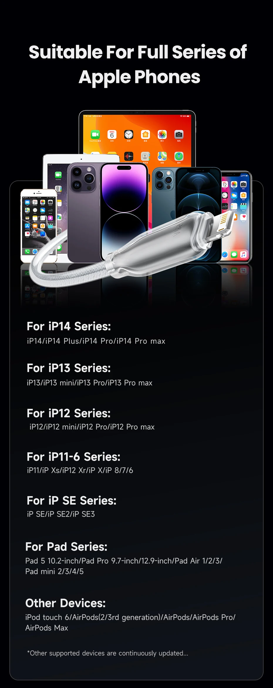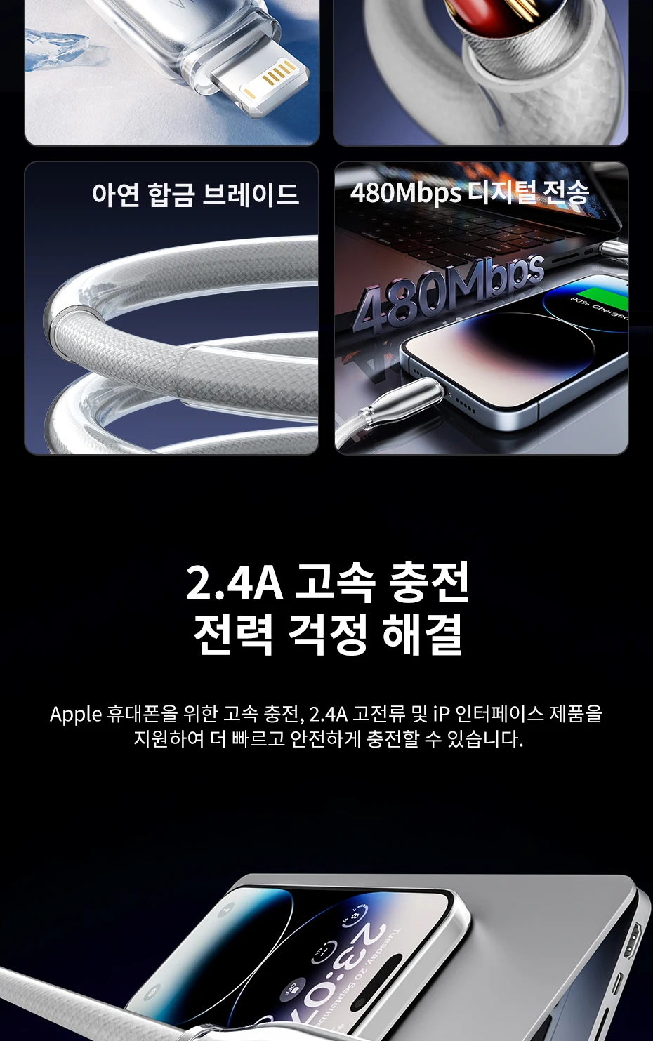 Carga rápida para iPhone, admite alta corriente de 2,4 A y