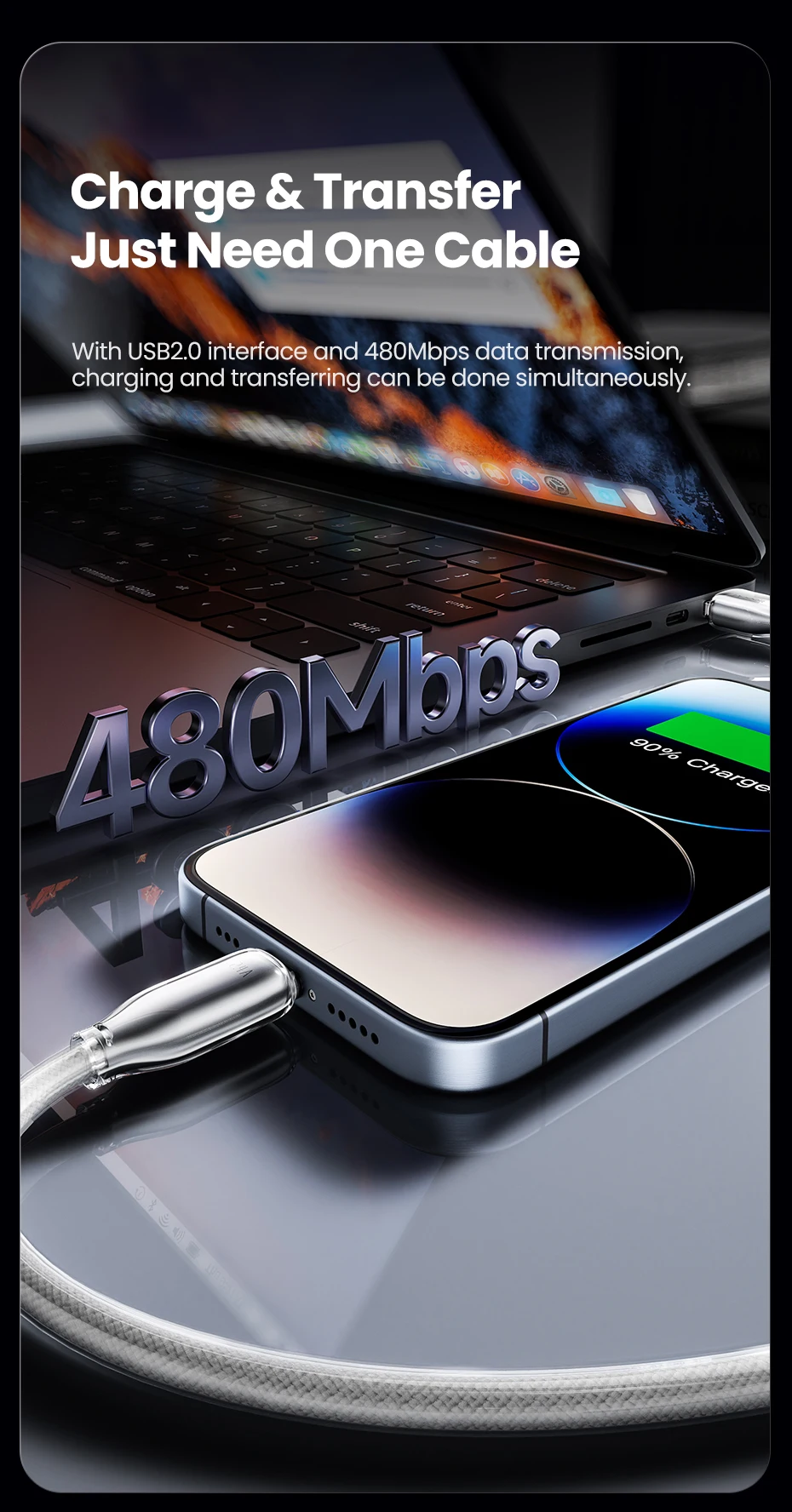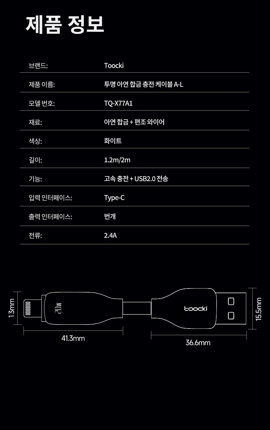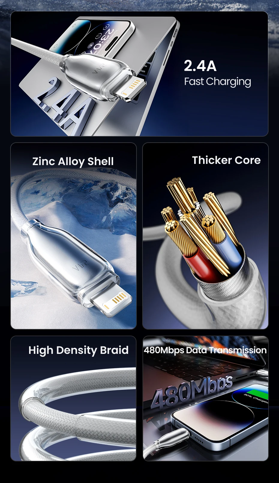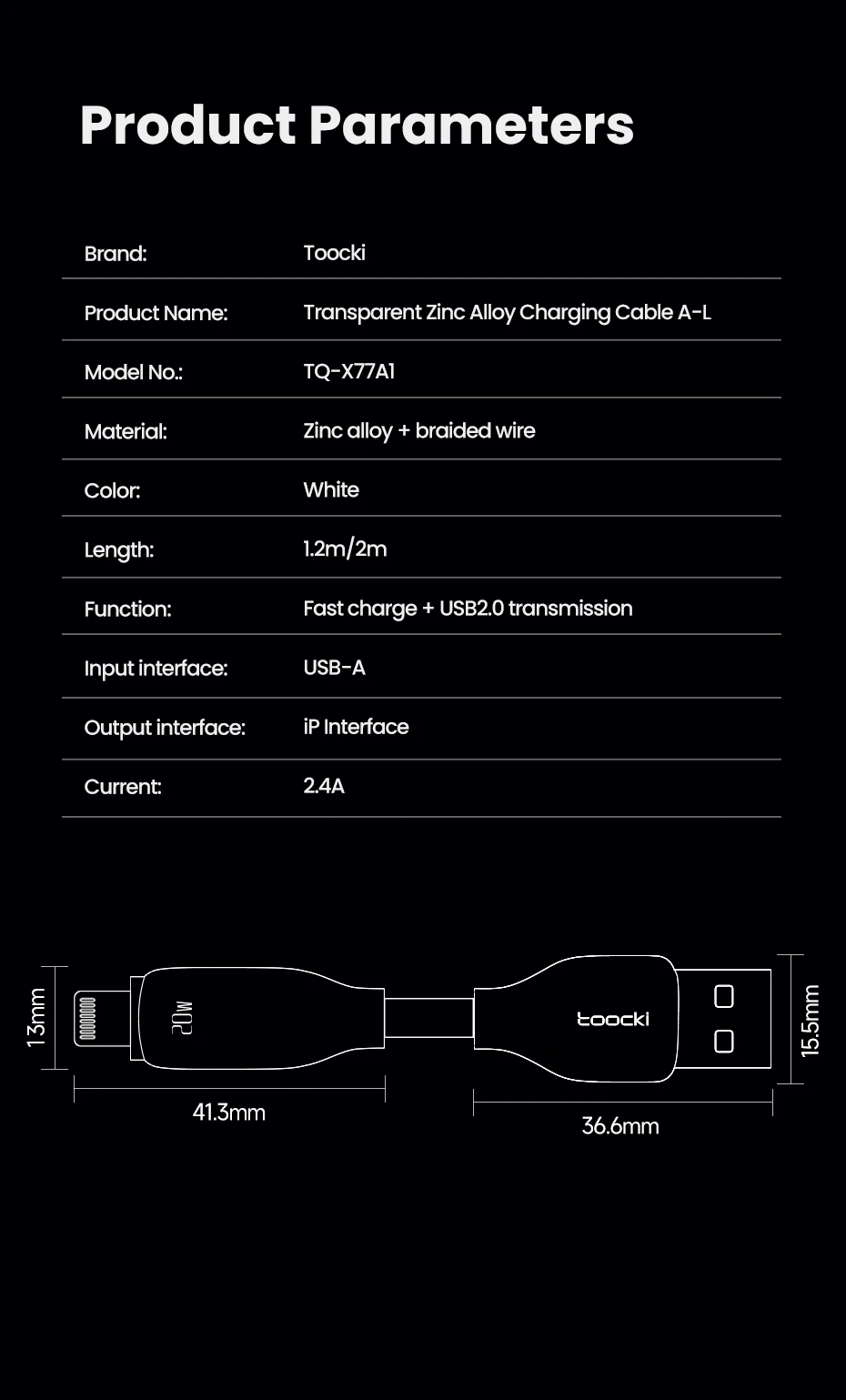 Nombre del producto: Cable de carga transparente de aleación de zinc A-L
