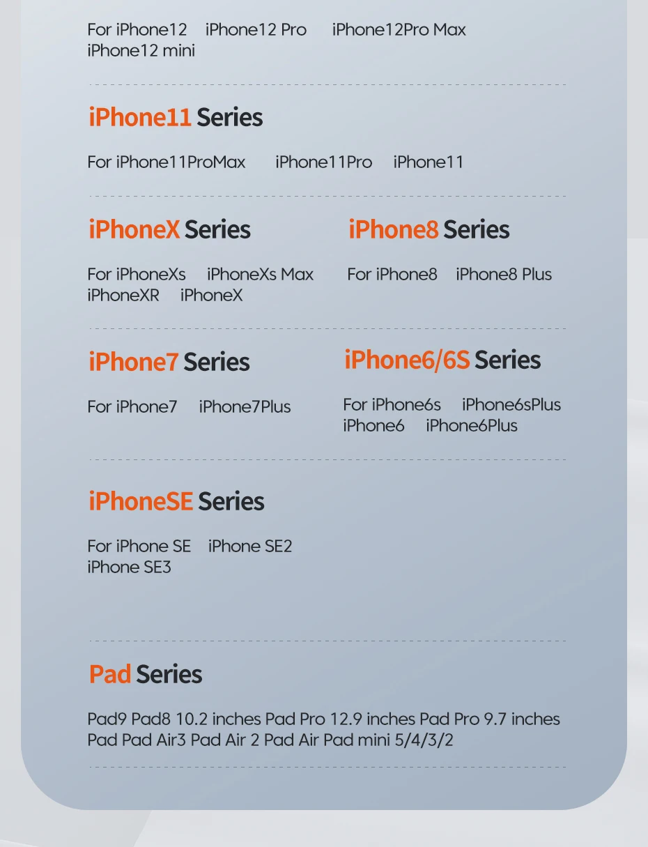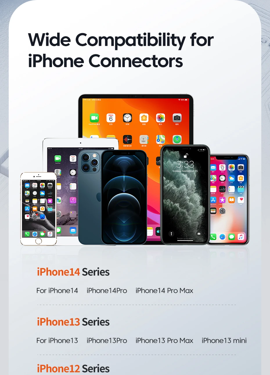 • Compatibilidad múltiple:Compatible con iPhone 15, 14, 13, 12, 11 Pro Max, Xs, Xr, 8 Plus y más.