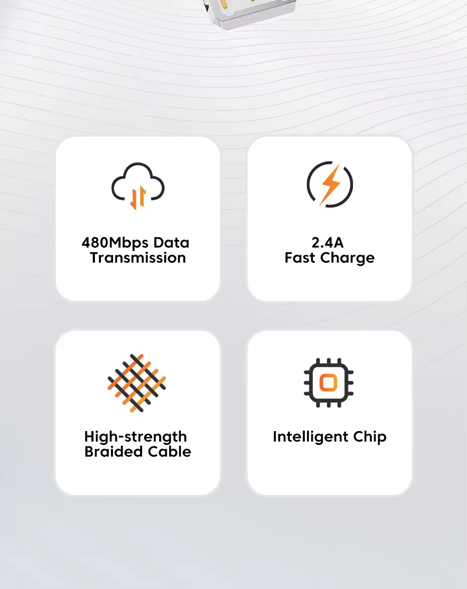 • Carga rápida:Cargue su iPhone rápidamente con una corriente máxima de 2,4A.