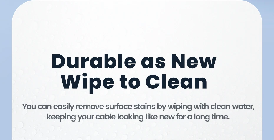 Puede eliminar fácilmente las manchas de la superficie limpiando con agua limpia, manteniendo su cable como nuevo durante mucho tiempo.