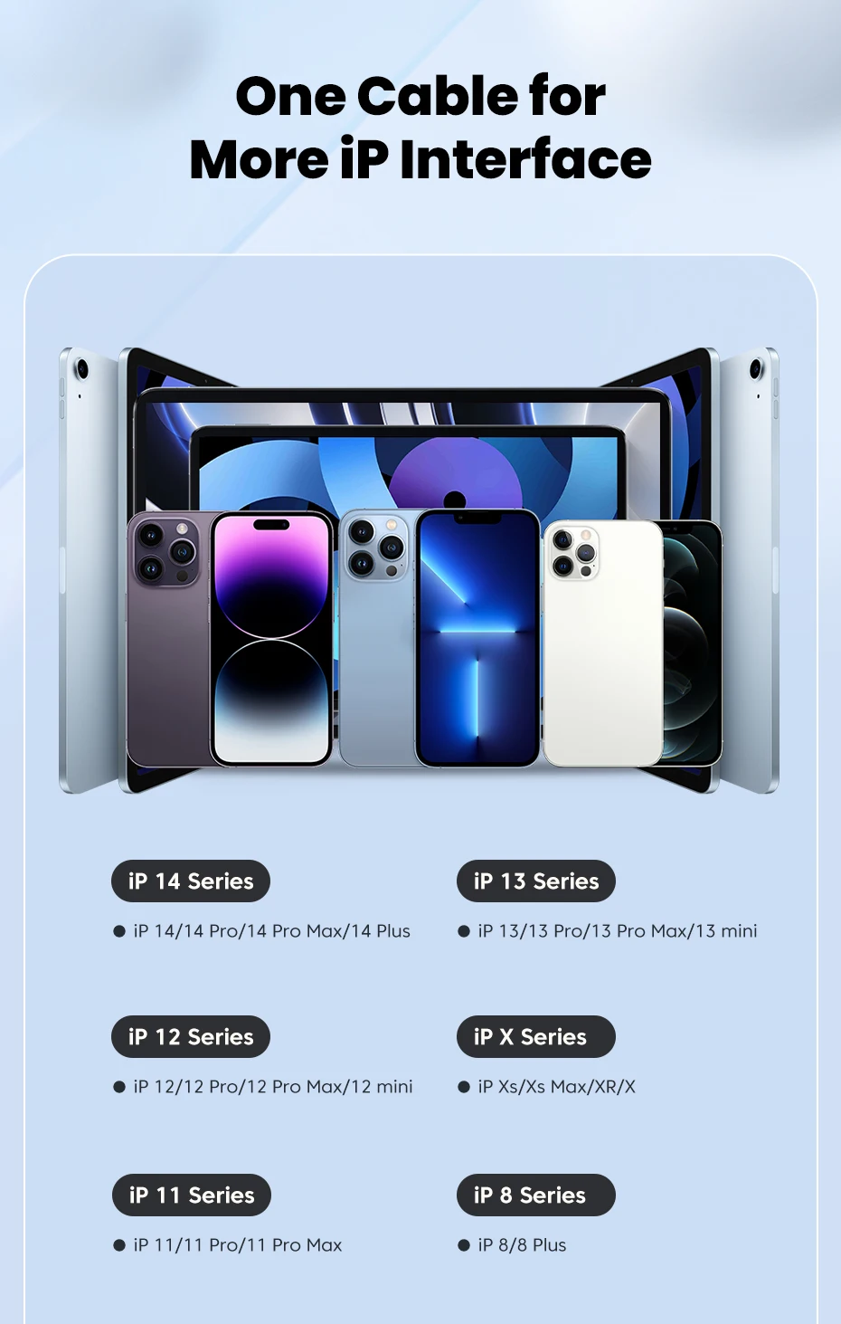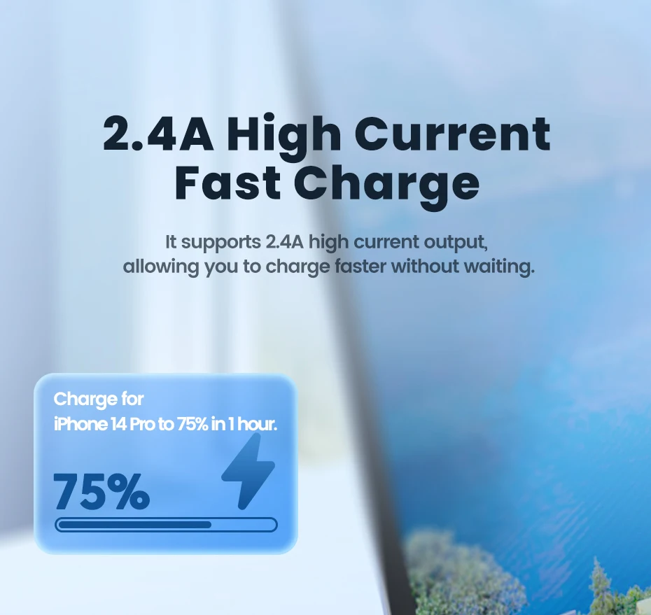 [Cable de carga rápida 2.4A para iPhone]Admite salida de alta corriente de 2,4 A, lo que le permite cargar más rápido sin esperar.