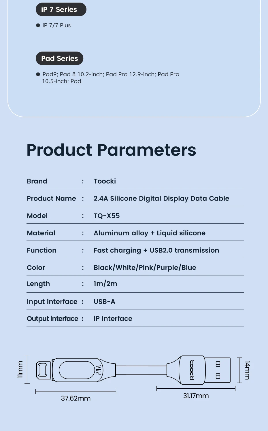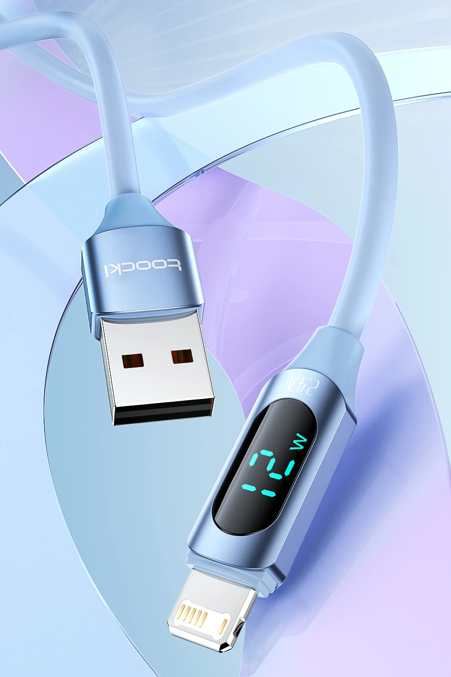 Comprar Toocki-Cable USB de pantalla para cargador de iPhone, 14, 13, 12, 11 Pro Max X XS XR, Cable de iluminación de silicona líquida de carga rápida