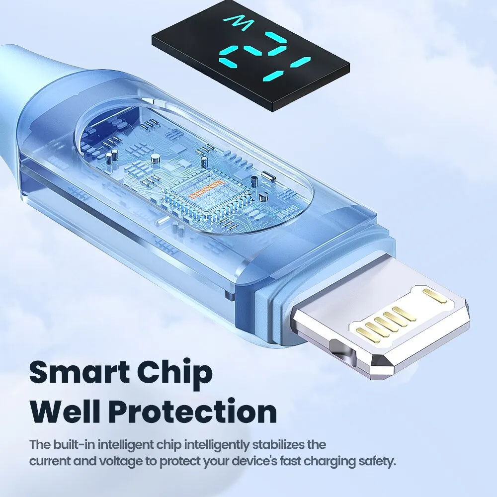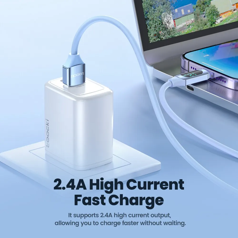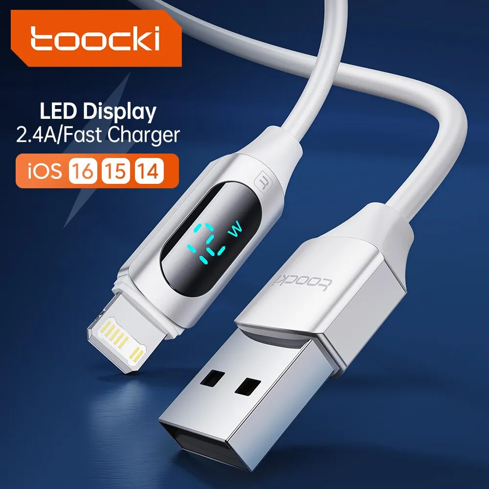 Comprar Toocki-Cable USB de pantalla para cargador de iPhone, 14, 13, 12, 11 Pro Max X XS XR, Cable de iluminación de silicona líquida de carga rápida