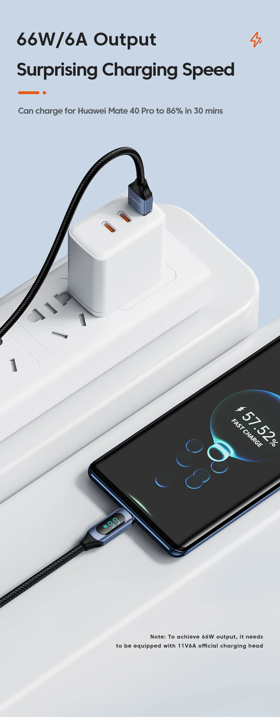 【 Velocidad de carga sorprendente de salida 66W/6A 】Puede cargar para Huawei Mate 40 Pro al 86% en 30 minutos.