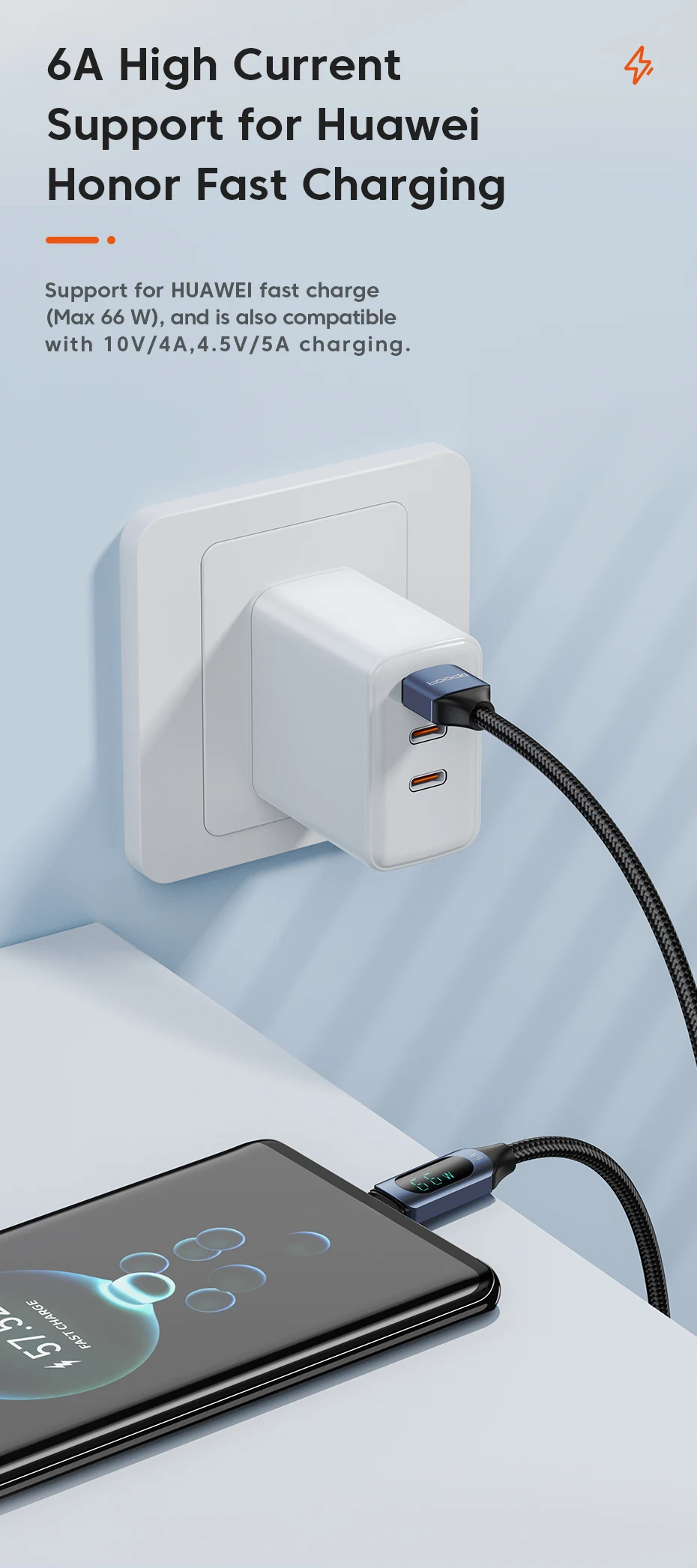 Soporte de alta corriente 6A para Huawei/Honor Soporte de carga rápida para carga rápida HUAWEI (Max 66 W), y también es compatible con carga de 10V/4A, 4,5 V/5A.